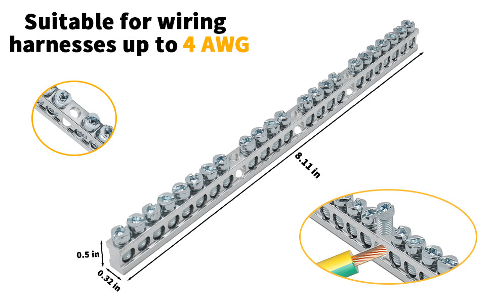 Complete Ground Bar Kit for Effortless Installation: This grounding bar kit includes everything for a quick setup, featuring stainless steel self-tapping screws. All necessary mounting hardware is contained for a straightforward installation of your new ground bus bar