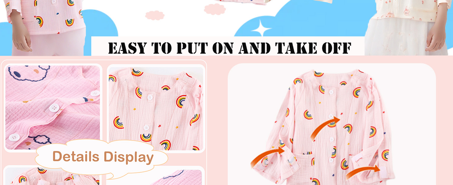 Convenient Care:Children's hospital clothes allow children to dress easily and comfortably,saving time for nursing staff,partially opening and closing,protecting patient privacy,avoiding embarrassment,and changing clothes while lying down.