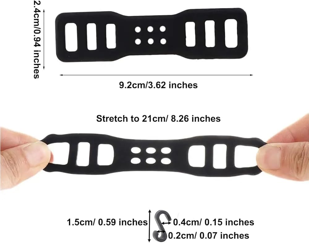 Elasticity and Universal Fits: Designed with six openings to fit for many sizes of bicycle handlebars, and the strap's elasticity allows for a snug fit around your mirror. This mount band holder can securely hold various small items like recorder, bike lights, stopwatches, tire-aid kits, tools, pumps, water bottle holders, cell phones, and more