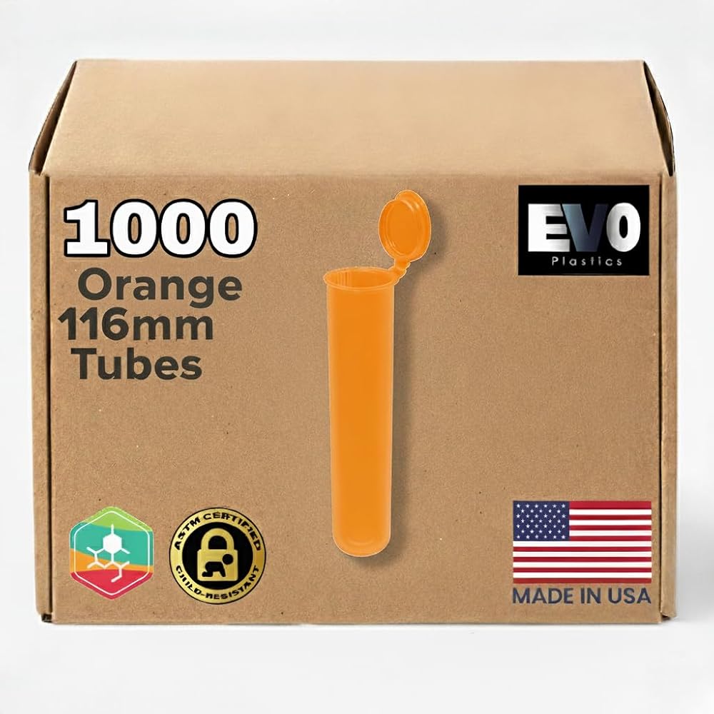 أنابيب برتقالية مقاس 116 مم - صنع في الولايات المتحدة الأمريكية - عبوة بلاستيكية محكمة الغلق (1000 قطعة)
