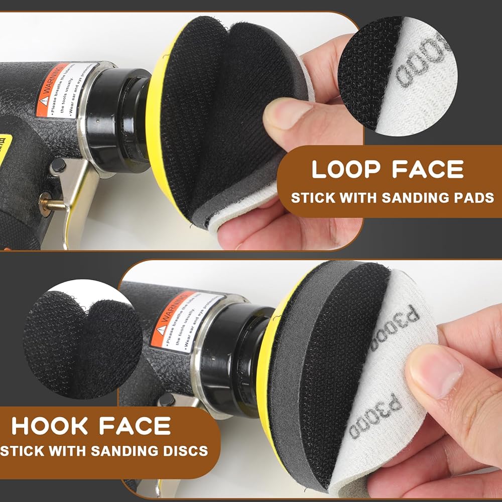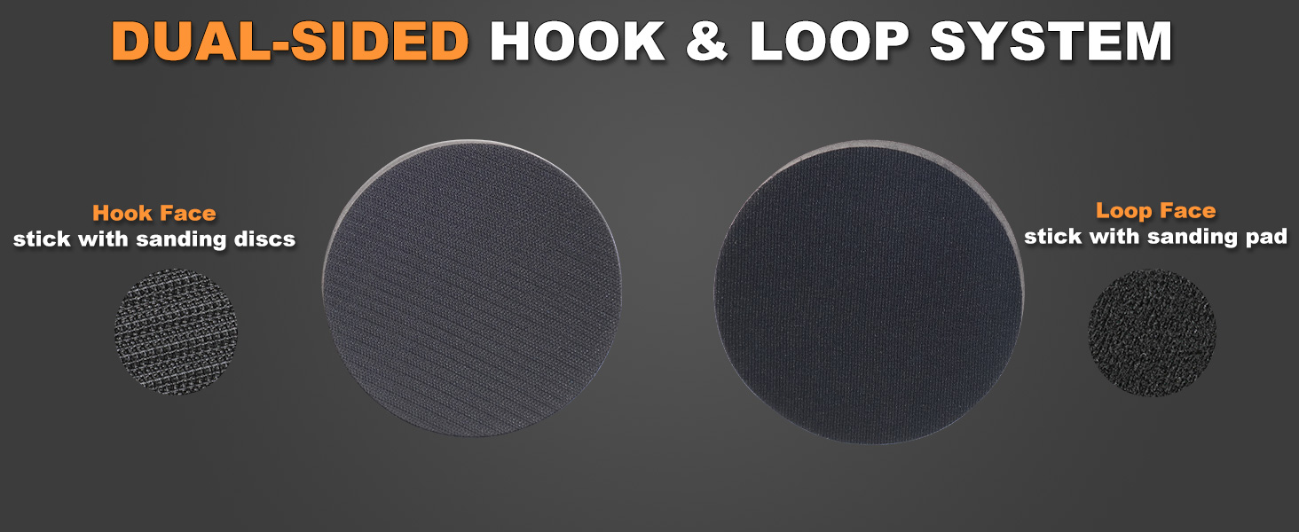 دعم الخطاف والحلقة: لا يعمل التصميم الخلفي للخطاف والحلقة لبطانة الصنفرة الإسفنجية على تبسيط تغييرات القرص فحسب، بل يظل المخزن المؤقت الإسفنجي الناعم بالداخل أيضًا فعالاً حتى بعد العديد من عمليات التبديل، ويمتص الصدمات باستمرار ويعادل الضغط.
