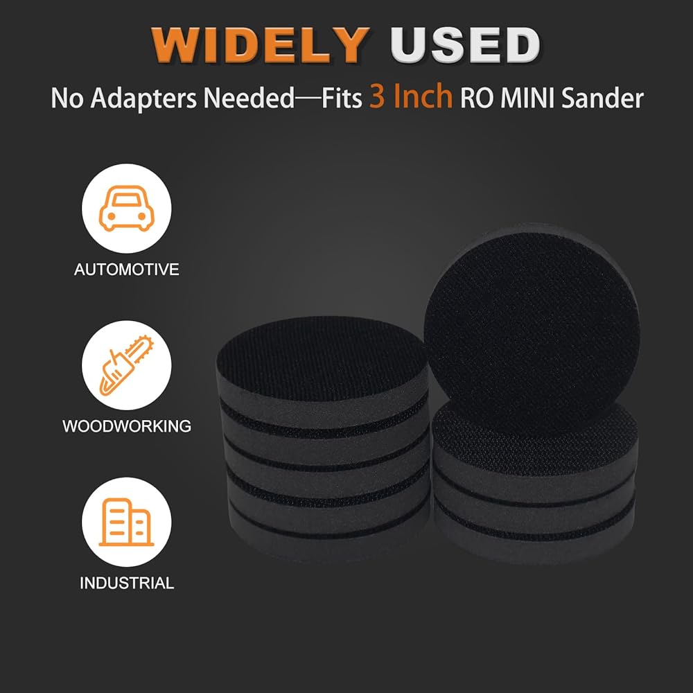 وسادة إسفنجية MINI DA SANDER: تُعد وسادات إسفنجية الصنفرة المكونة من 9 قطع مثالية لمعظم آلات الصنفرة المدارية مقاس 3 بوصات. فهي تعمل على إطالة عمر ورق الصنفرة الدائري بنسبة 30 - 40%، وتقليل التعب بسعة أقل، وتسريع عملية إزالة المواد المركبة.