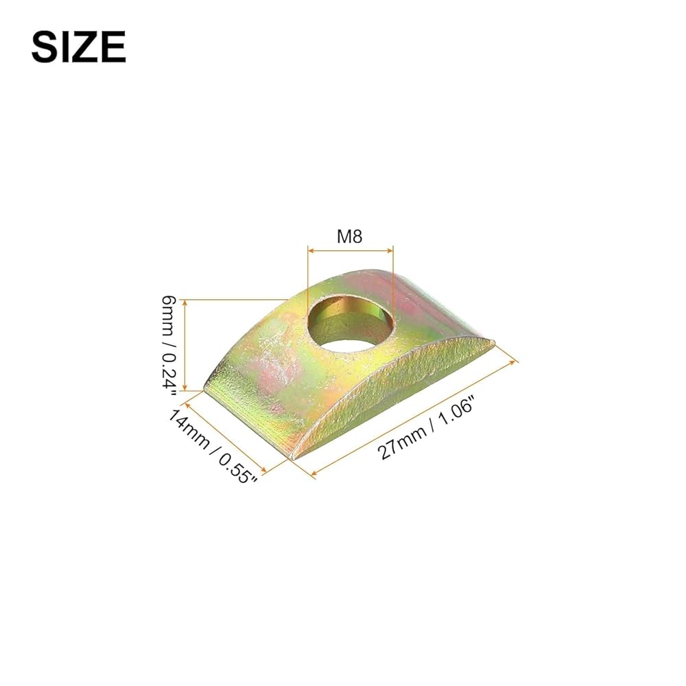 DIMENSIONS: M8 size washers measuring 1.06" length x 0.55" width x 0.24" height, with precision-engineered center hole for perfect bolt compatibility
