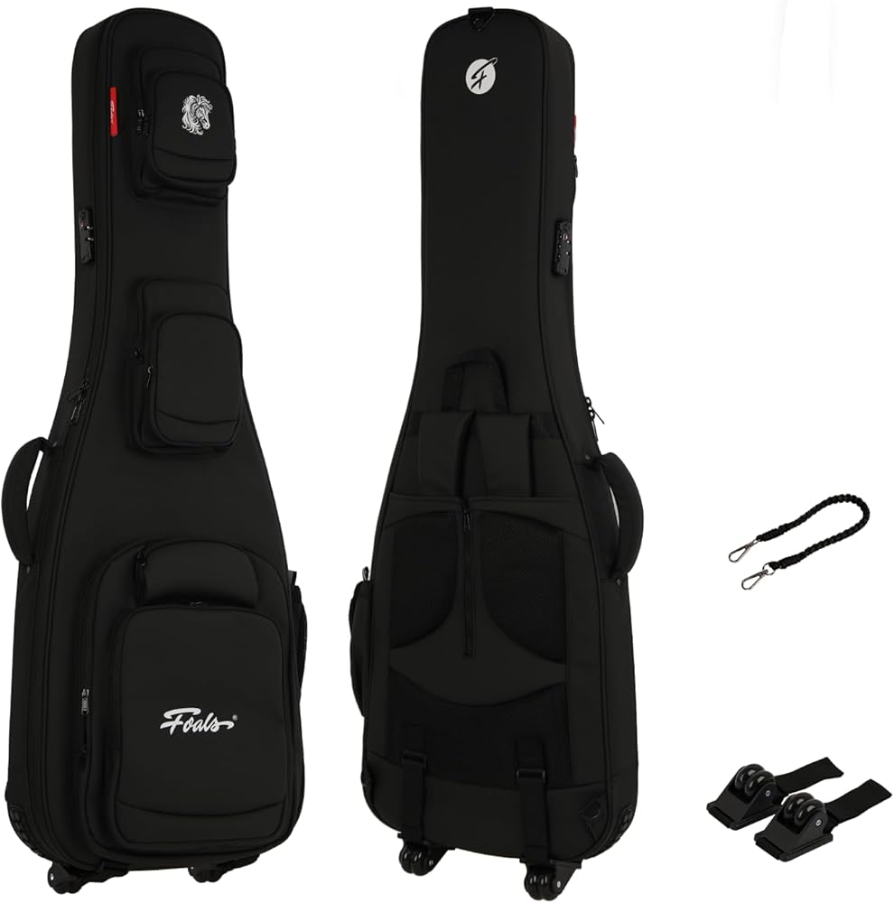 حقيبة جيتار FOOLS Bass مع عجلات قابلة للإزالة، قفل TSA، حقيبة ظهر مبطنة سميكة مقاومة للماء للسفر