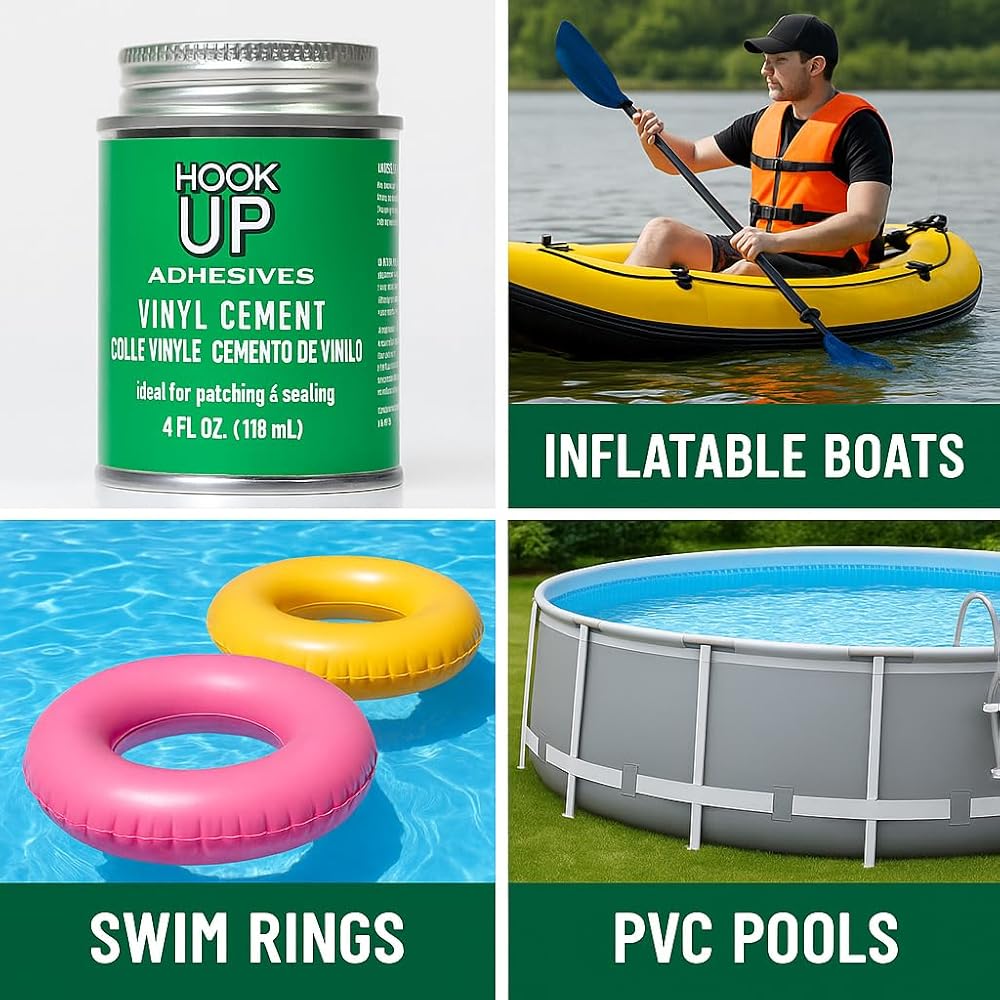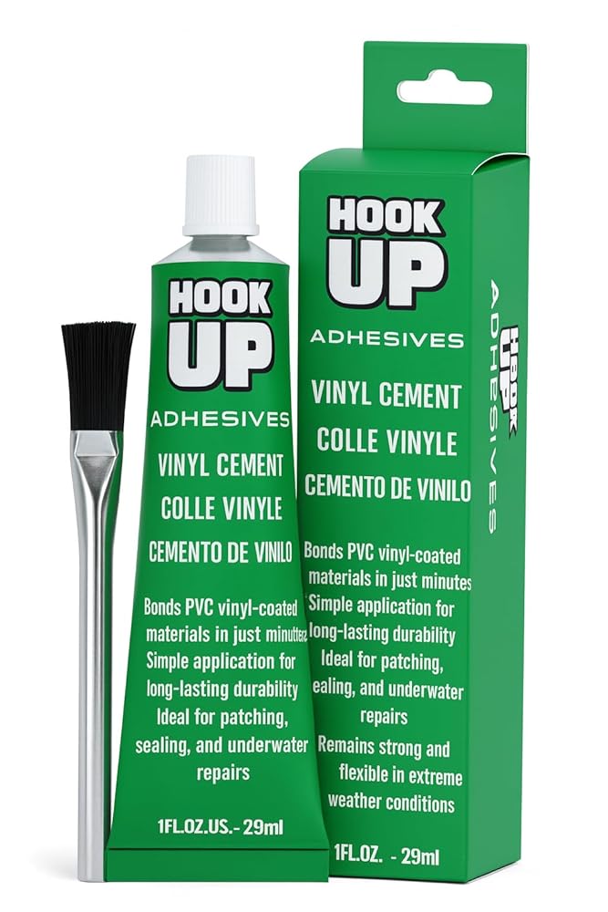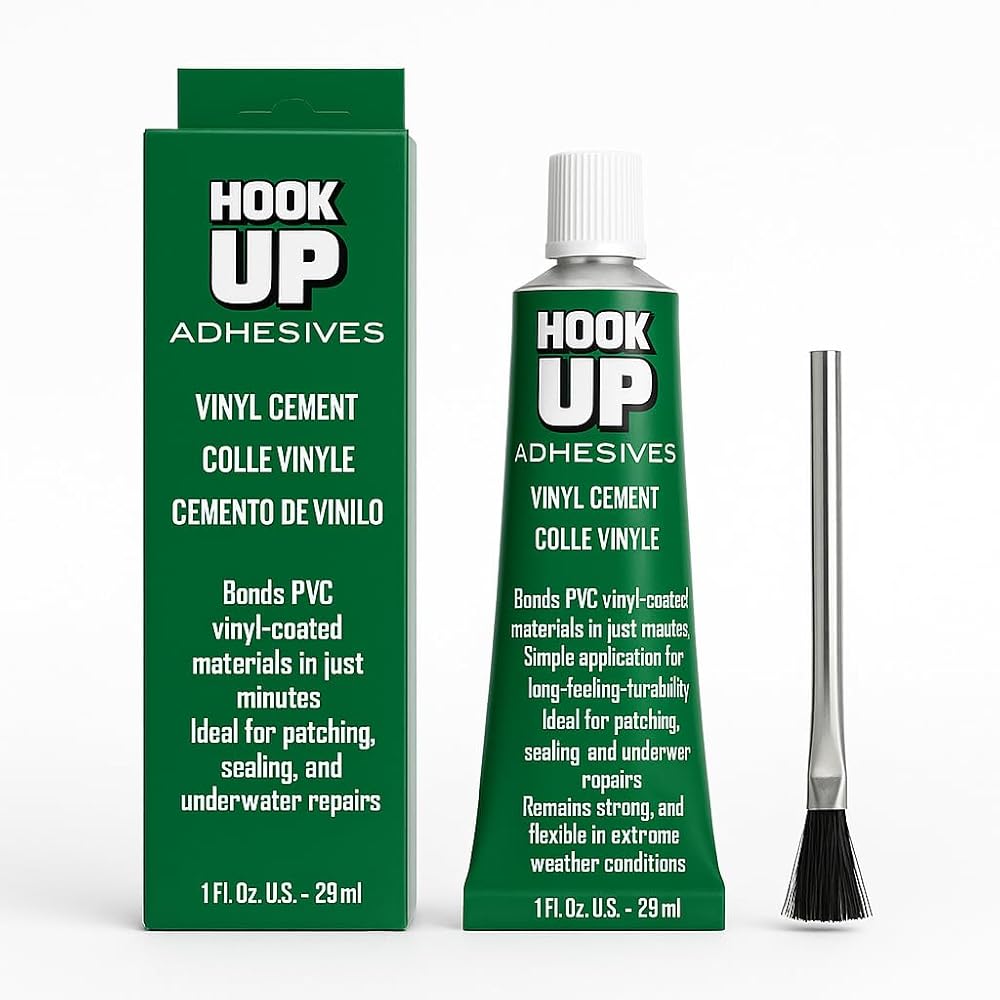 Revitalize and protect your vinyl surfaces with our HOOK UP **High-Grade Vinyl Cement** the perfect adhesive for all your vinyl repair projects. Whether you need to patch an elusive leak in your pool liner or repair your children's favorite inflatable toys, this advanced adhesive is crafted for reliable, long-lasting results that you can trust. Our vinyl cement provides a powerful bond that is not only waterproof but also designed to withstand exposure to water and harsh weather conditions. This makes it the go-to solution for pool patch repairs, ensuring that your pool remains leak-free throughout the season. Its exceptional flexibility allows it to adapt to the natural movements of vinyl materials, preventing cracking or peeling over time. **Why Choose HOOK UP?** **Exceptional Adhesive Strength:** Engineered for superior bonding, our vinyl cement securely adheres to a variety of surfaces, including PVC, vinyl liners, and inflatables. With just one application, you can achieve a strong and reliable seal. **Water-Resistant and Durable:** Once fully cured, this cement forms a waterproof barrier, making it perfect for both above-ground and in-ground pool repairs. Enjoy peace of mind knowing that your patches will hold even in the toughest conditions. **Quick-Drying Formulation:** Time is of the essence; that's why our vinyl cement features a fast-setting formula that allows you to get back to enjoying your pool or inflatables quickly—no prolonged waiting necessary! **Ideal for a Range of Uses:** Whether it's a small puncture in an inflatable or a tear in your pool liner, our vinyl cement is the versatile solution that covers all your needs. It's also great for repairing vinyl upholstery, outdoor decorations, and more! **Included Instructions:** Each bottle comes with step-by-step instructions, making it easy for DIY enthusiasts and anyone looking to make quick repairs to follow along and achieve professional results. Don't let small leaks or tears put a damper on your summer fun! Choose our Hook UP **High-Grade Vinyl Cement** for a versatile, reliable, and effective solution to your vinyl repair needs. Enjoy the peace of mind that comes from knowing you have a durable adhesive that is up to the task. **Repair. Restore. Enjoy!**