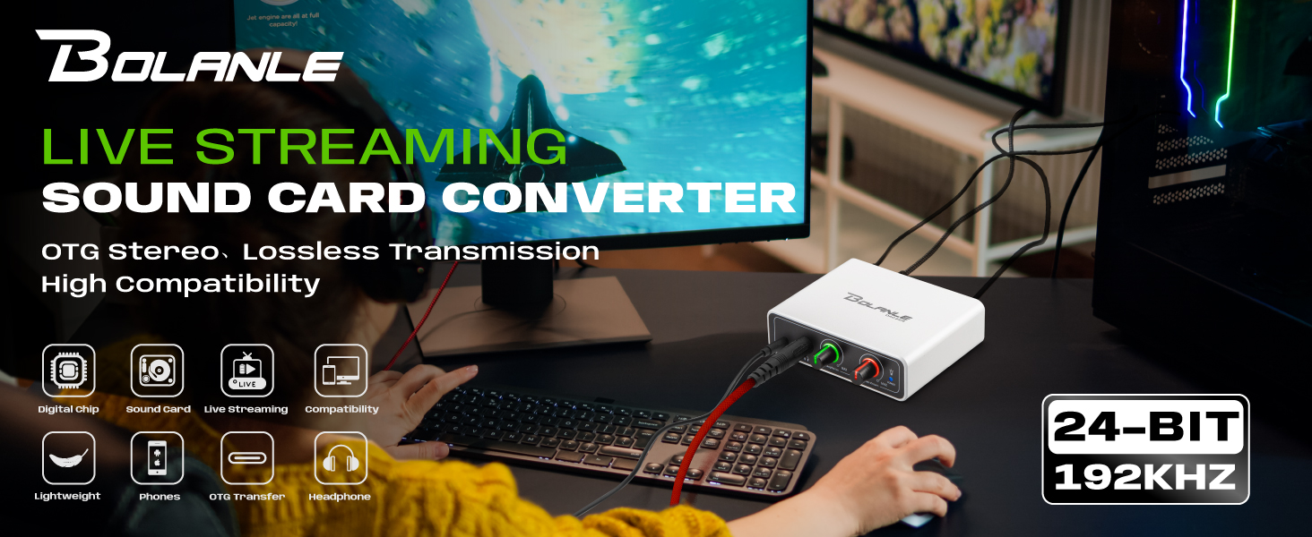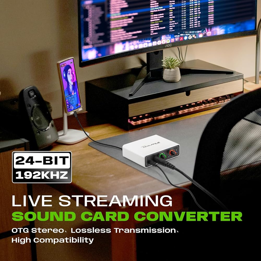 واجهة صوت Bolanle DAC USB OTG للبث المباشر، مدخل AUX 3.5 مم لمحول الهاتف USB-C، بطاقة صوت ستيريو لهاتف iPhone Android، توصيل الخلاط بالهاتف المحمول لتسجيل TikTok YouTube Instagram