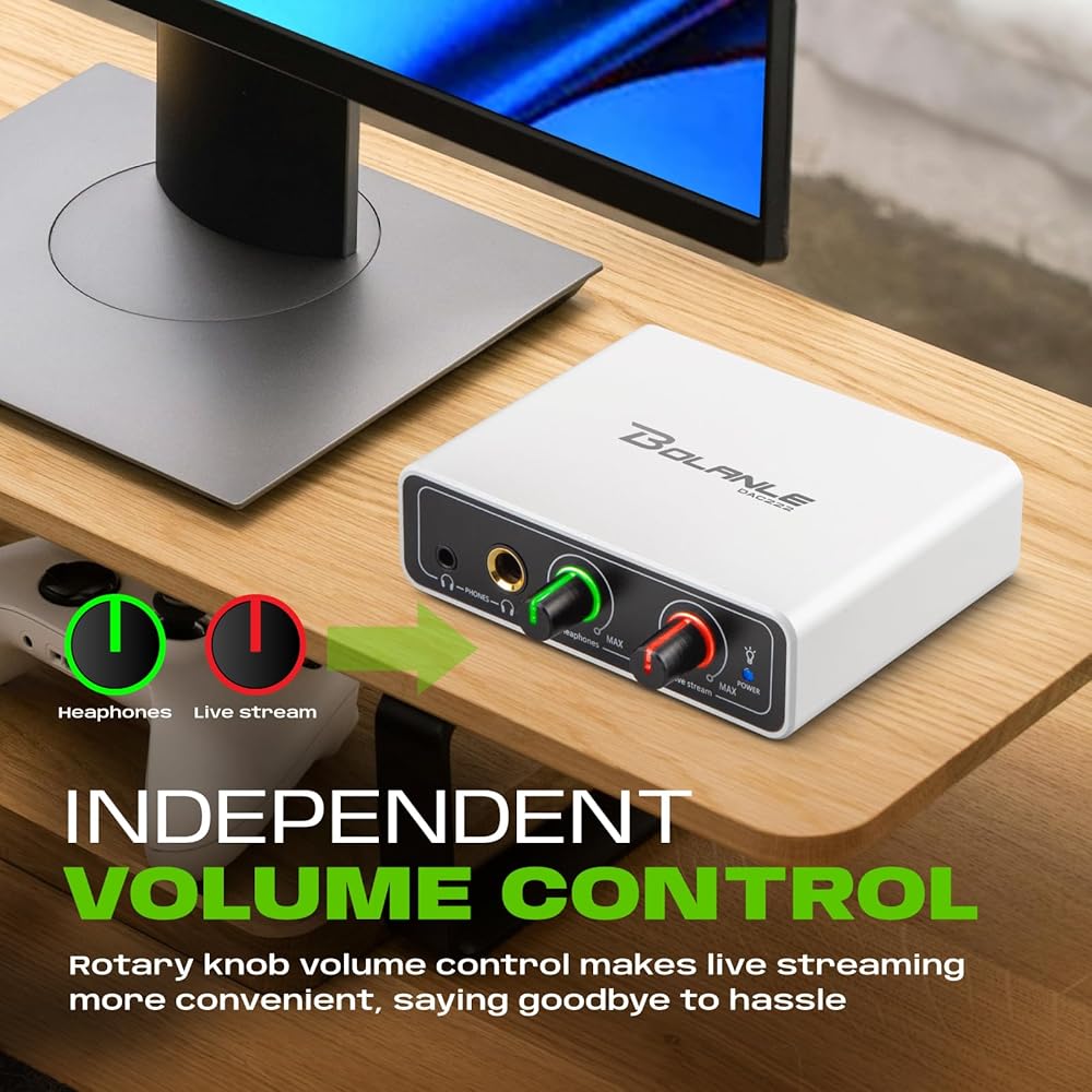 • 🎚️ عناصر تحكم منفصلة للمراقبة والبث: يضبط مقبض الشاشة ما تسمعه في سماعات الرأس. يقوم مقبض البث المباشر بضبط مستوى الصوت المرسل إلى هاتفك. اطلب التوازن المثالي بين راحة المراقبة لديك وحجم البث الأمثل. لا مزيد من التخمين إذا كان صوت البث الخاص بك ساخنًا جدًا أو هادئًا جدًا.
