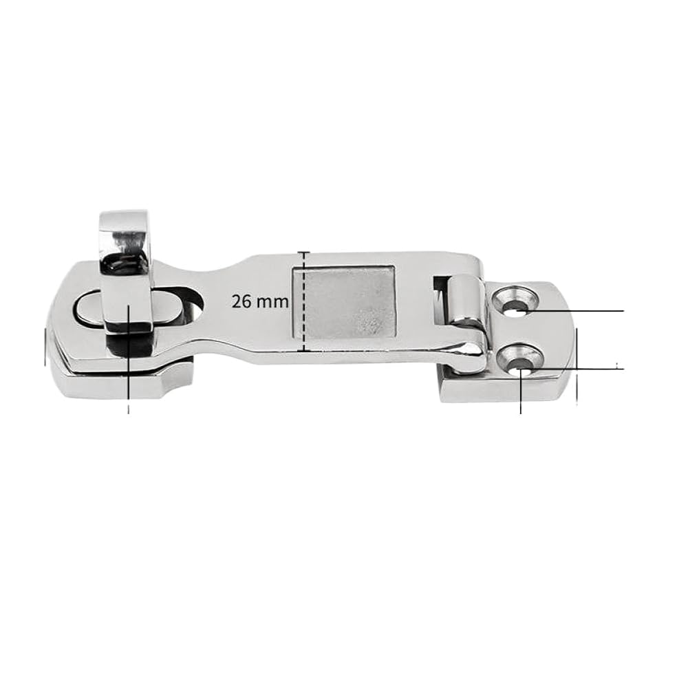 316 Stainless Steel Anti-Rattle Latch Boat Locker Clamp Marine Locker Latch Boat Hooks Buckle Accessories Made of marine grade stainless steel, resistant to corrosion.Lever action, silent anti-rattle type with an eye for a padlock.Maximum corrosion resistance in saltwater environments.The flush profile and easy installation make this latch suitable for hatches, live wells, electrical enclosures, and other compartments on your marine boat, RV.Widely used in ships and marine applications.