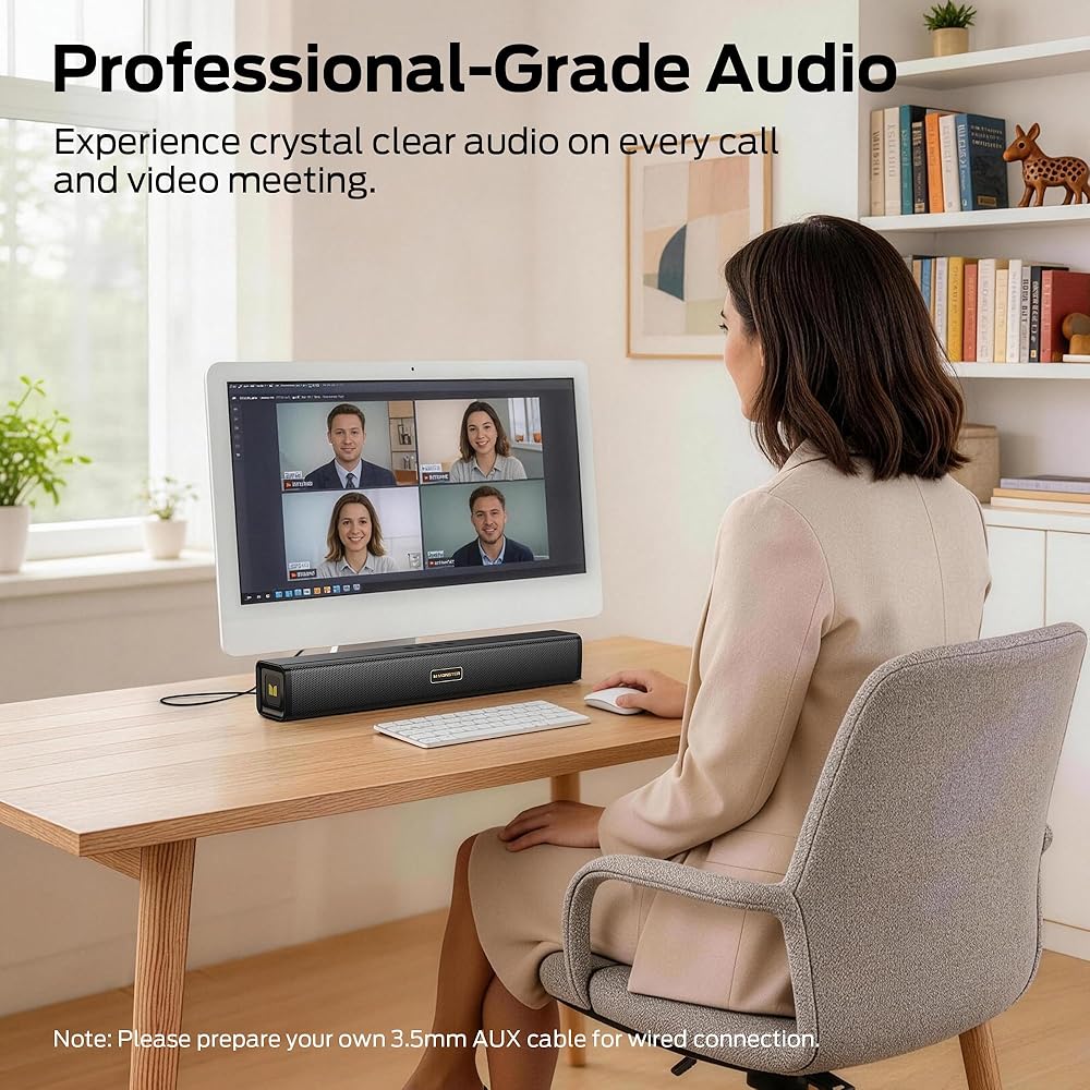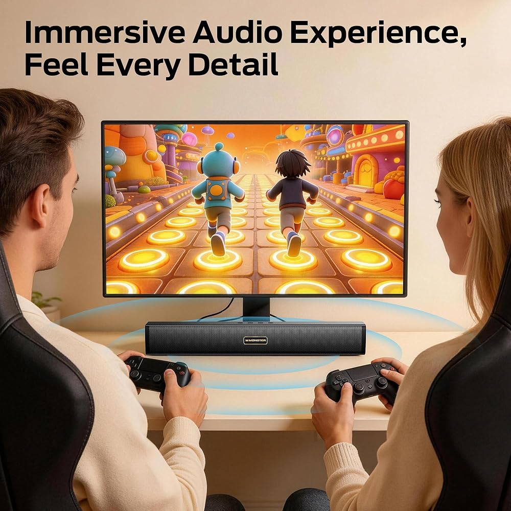【تصميم مضغوط لسطح المكتب والكمبيوتر المحمول】مصممة خصيصًا لإعدادات سطح المكتب والكمبيوتر المحمول، توفر مكبرات صوت الكمبيوتر Monster S220 صوتًا واضحًا ومتوازنًا مثاليًا للعمل والألعاب الخفيفة والبث. ينزلق تصميمه المدمج بسهولة أسفل شاشتك، مما يزيد من مساحة العمل مع الحفاظ على سهولة الوصول إلى عناصر التحكم.