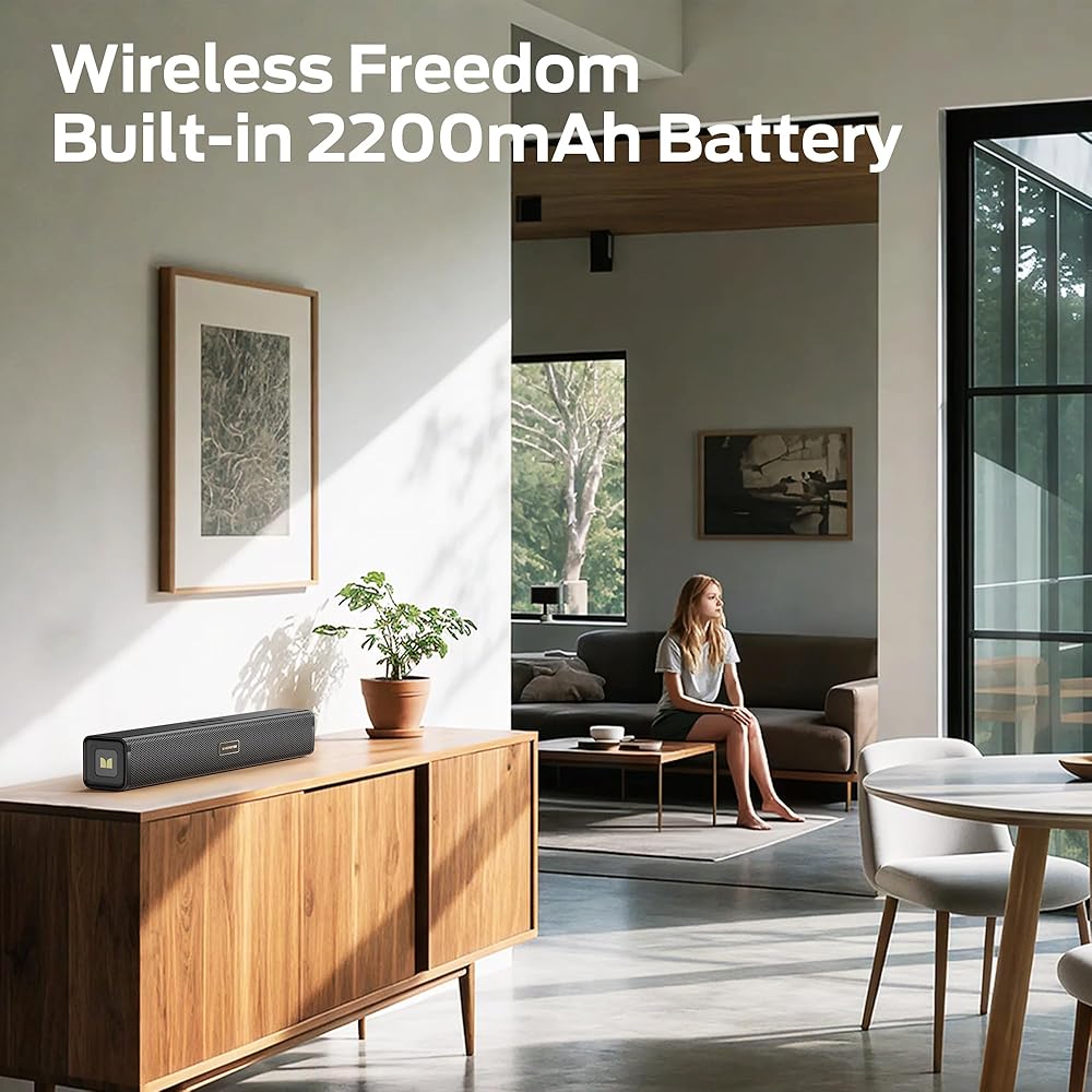 【الحرية السلكية واللاسلكية】اتصل كيفما تريد مع مكبرات صوت شاشة مونستر S220. يمكنك البث لاسلكيًا عبر تقنية Bluetooth 6.0 من هاتفك الذكي أو جهازك اللوحي أو الكمبيوتر المحمول. استخدم مدخل AUX مقاس 3.5 مم للحصول على اتصال سلكي مستقر بجهاز الكمبيوتر أو الشاشة. أو قم بتشغيل الموسيقى مباشرة من محرك أقراص USB أو بطاقة TF.