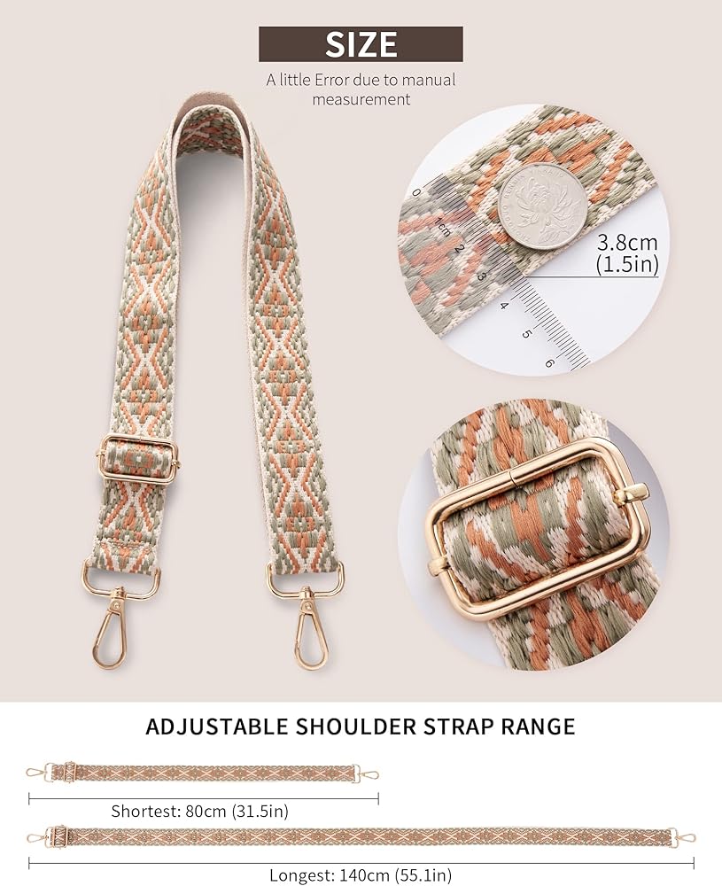 👜Adjustable Purse Strap - Our Handbag strap is adjustable in length from 31.5" to 55.12", making it suitable for wearing on the shoulder or crossbody. It's also a great decorative accessory for your bag.
