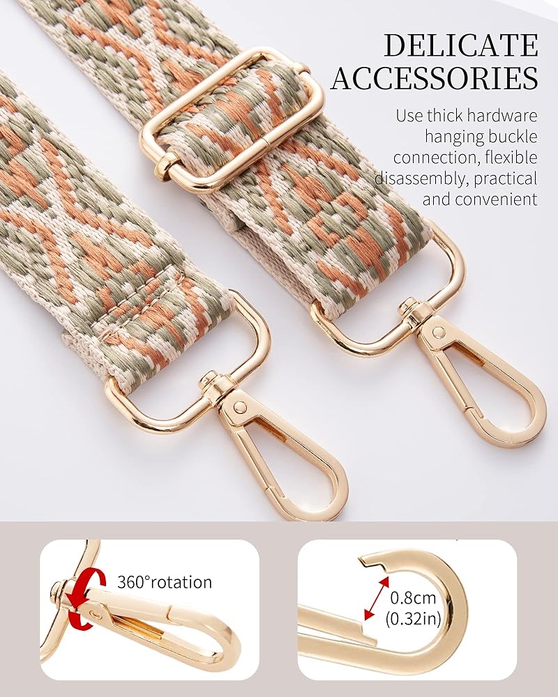 👜Stylish Hardware - Our purse strap features light gold hardware and snap hooks that fit up to 8mm diameter rings, adding a touch of elegance to your bag.