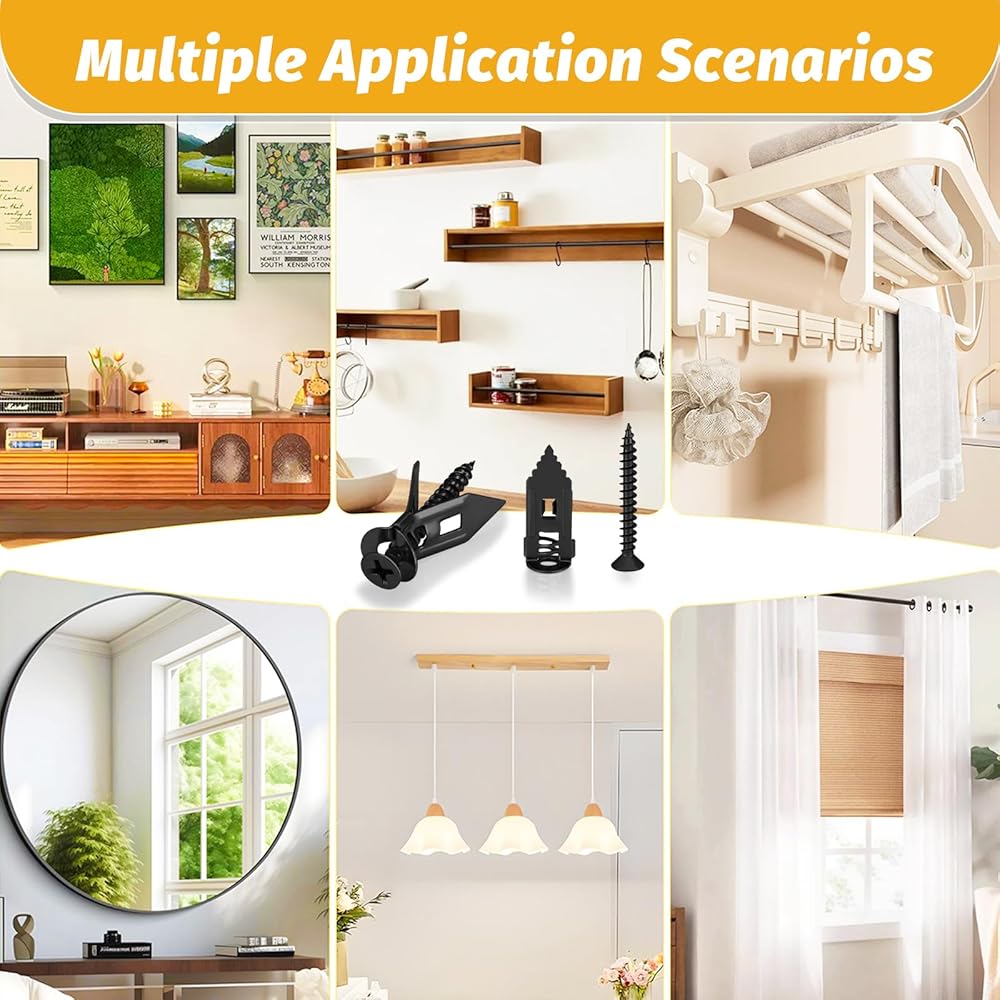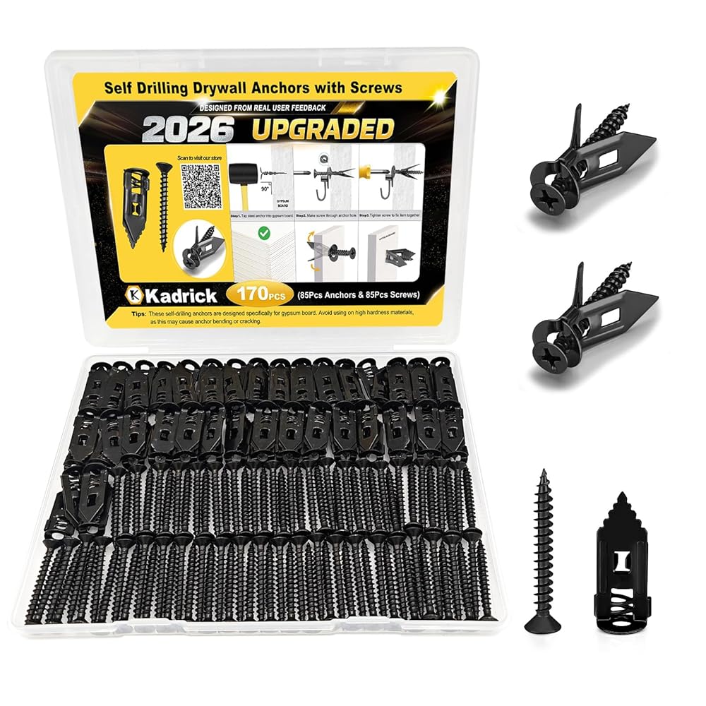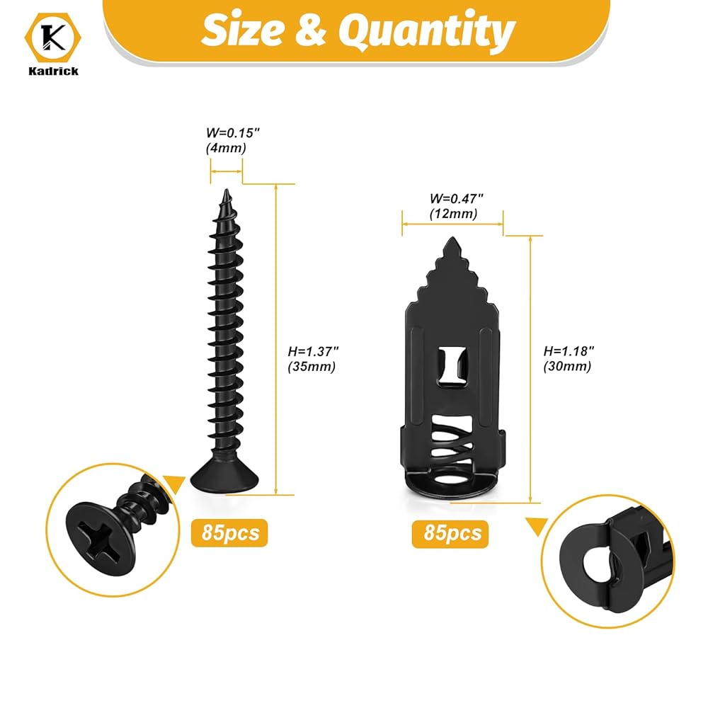 170 قطعة من مثبتات الحوائط الجافة ذاتية الحفر مع براغي من Kadrick، مرساة حائط فولاذية صلبة مطلية بالكهرباء باللون الأسود، مرساة حائط مجوفة غير قابلة للثقب لديكور المنزل الحديث والتركيبات المرئية