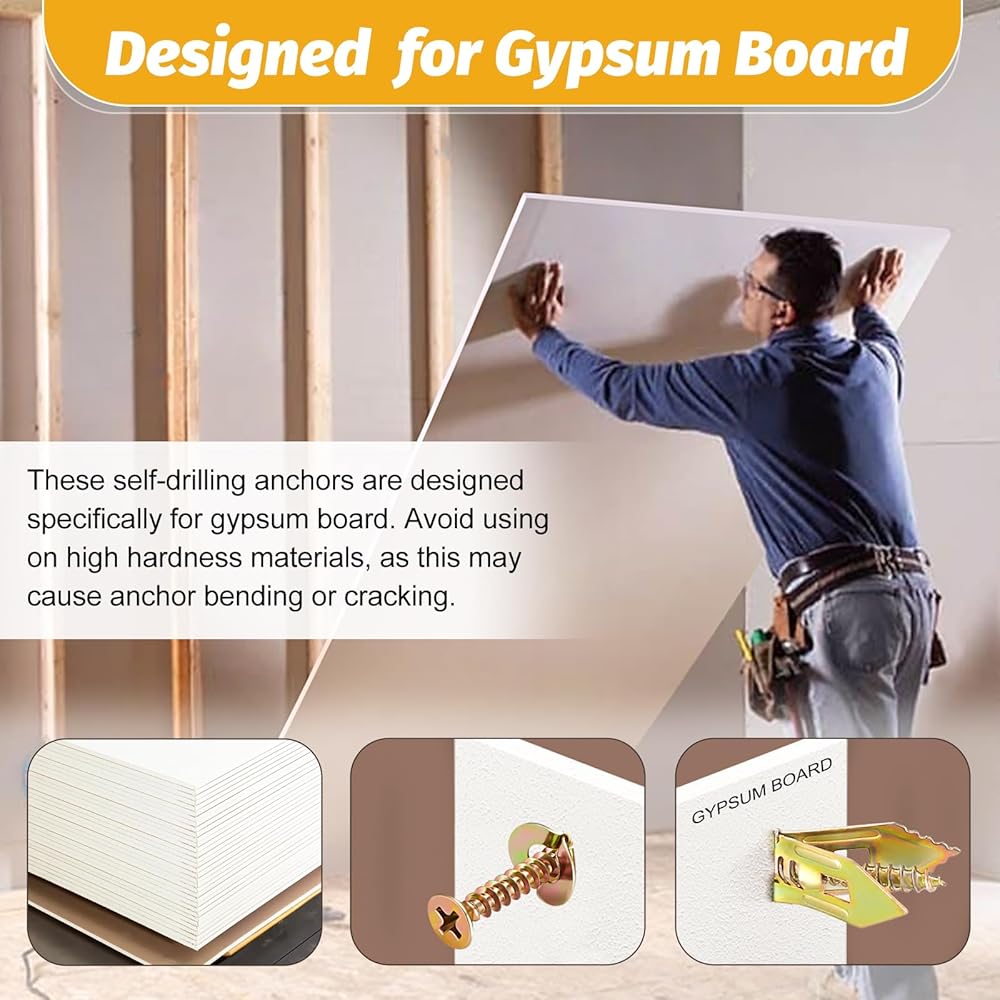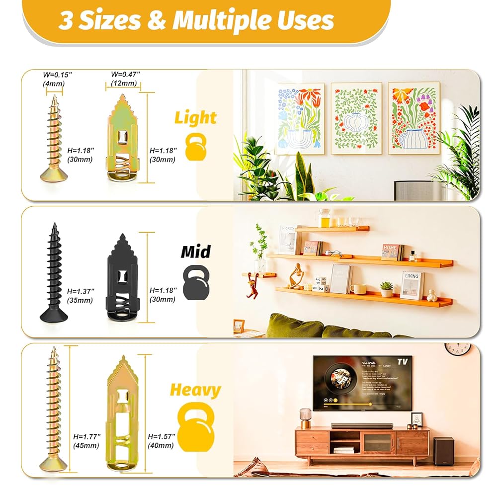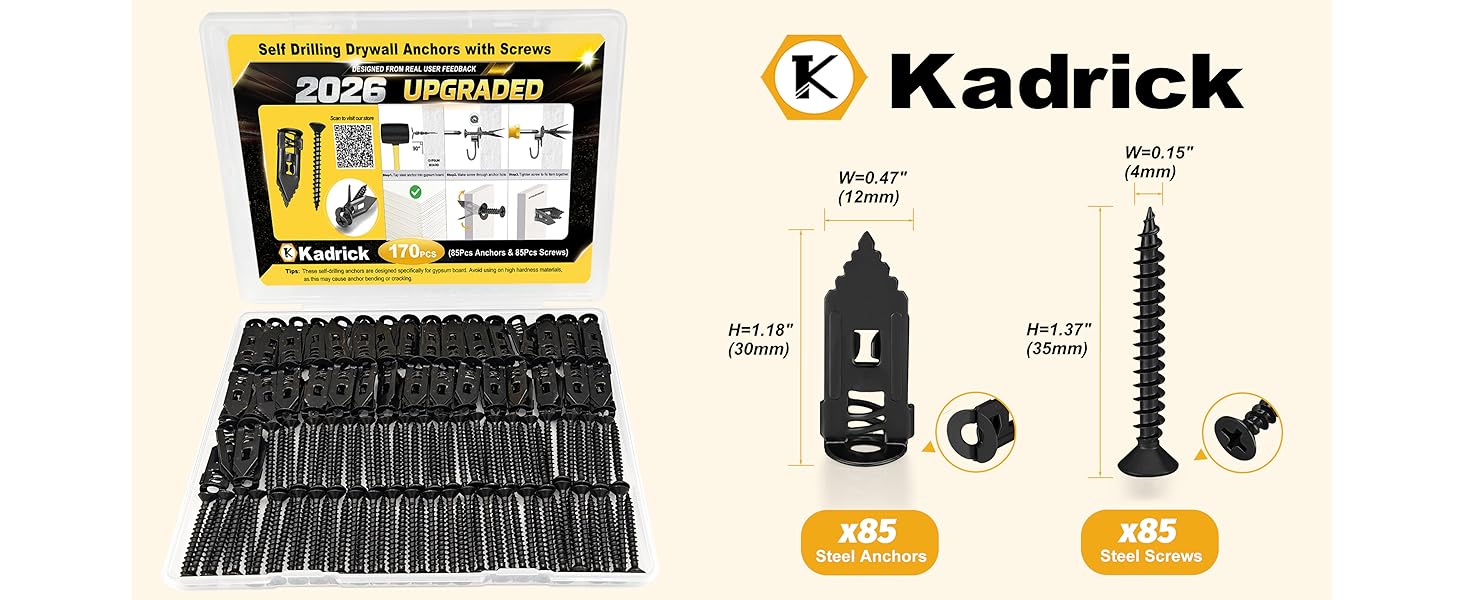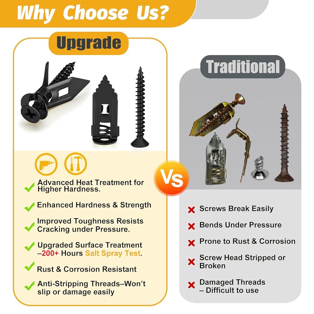 170 قطعة من مثبتات الحوائط الجافة ذاتية الحفر مع براغي من Kadrick، مرساة حائط فولاذية صلبة مطلية بالكهرباء باللون الأسود، مرساة حائط مجوفة غير قابلة للثقب لديكور المنزل الحديث والتركيبات المرئية