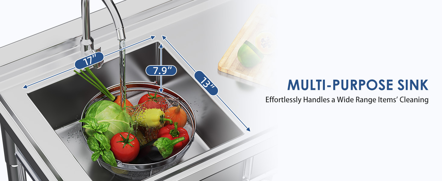 متعددة الاستخدامات للاستخدام الداخلي والخارجي - مثالية للمطاعم وغرف الغسيل والجراجات والباحات والمزارع ومناطق الشواء الخارجية. يوفر هذا الحوض القائم بذاته المصنوع من الفولاذ المقاوم للصدأ محطة غسيل موثوقة لكل من البيئات التجارية والمنزلية