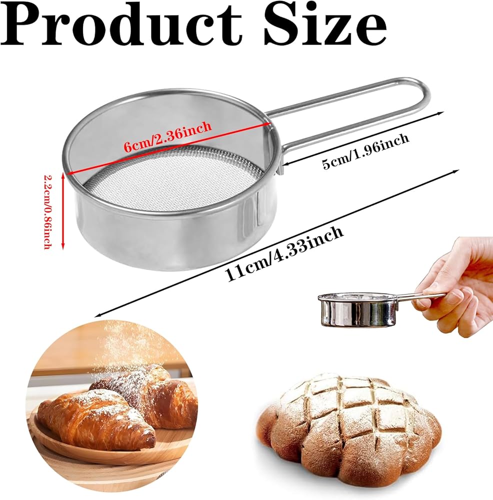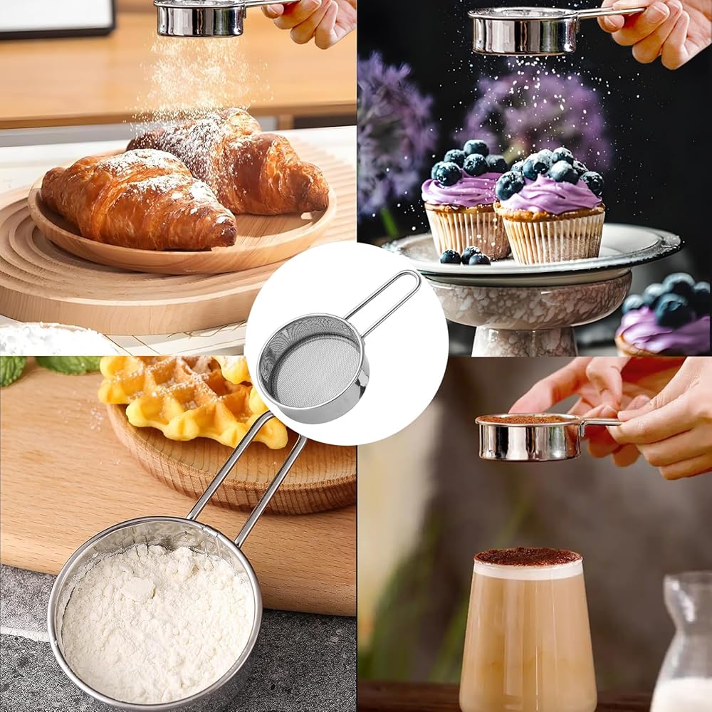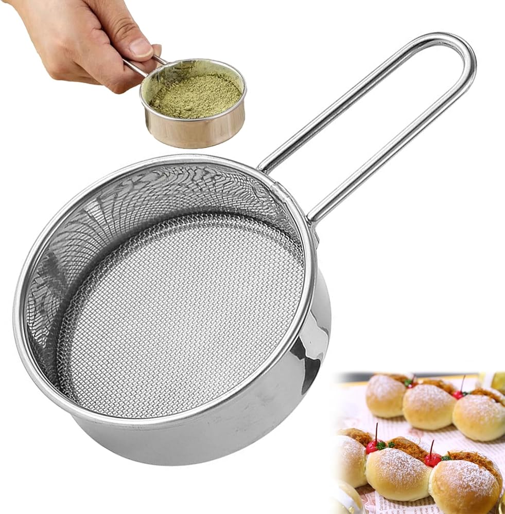 Versatile for Multiple Ingredients: Use for sifting flour, dusting powdered sugar on desserts, or straining broths and sauces. The fine mesh even filters coffee grounds or matcha powder for smooth beverages