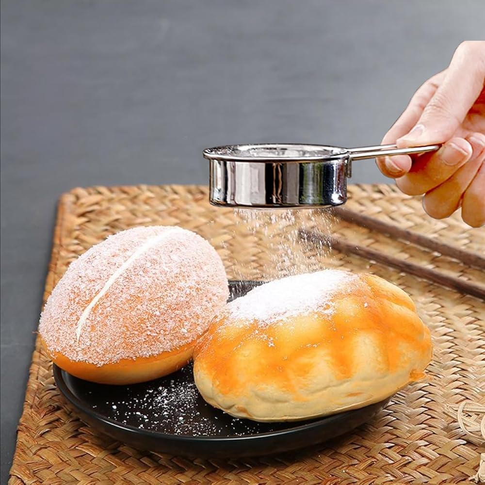 Fine Mesh for Precision Sifting: The dense mesh efficiently sifts flour, sugar, cocoa powder, and spices—removing lumps and ensuring smooth, consistent textures in batters and doughs. Ideal for professional-quality baking results