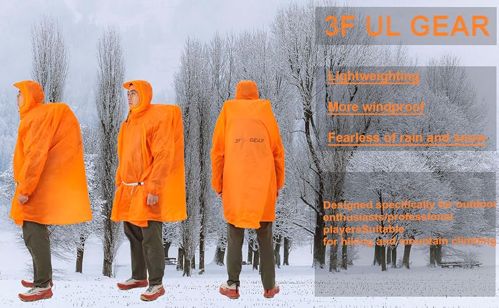 • تم تطوير معطف المطر خفيف الوزن 3F خصيصًا لعشاق الهواء الطلق واللاعبين المحترفين للتسلق/التنزه سيرًا على الأقدام/التخييم.