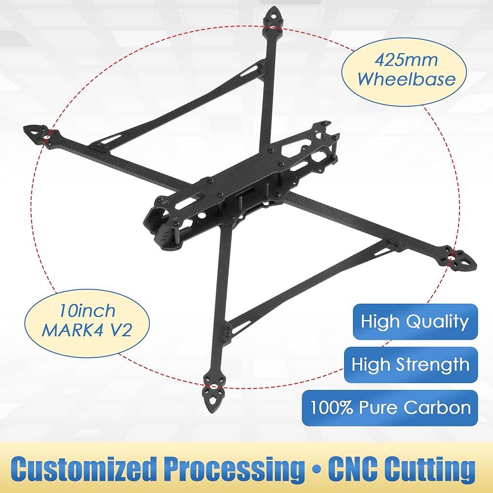 بديل لإطار MARK4 V2 10 بوصة 425 مم 1 قطعة إطار من ألياف الكربون مناسب لطائرة RC FPV حرة طويلة المدى بدون طيار أجزاء DIY متوافقة مع محرك 3115 1050 المروحة