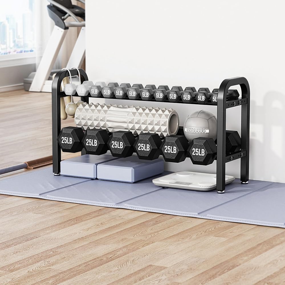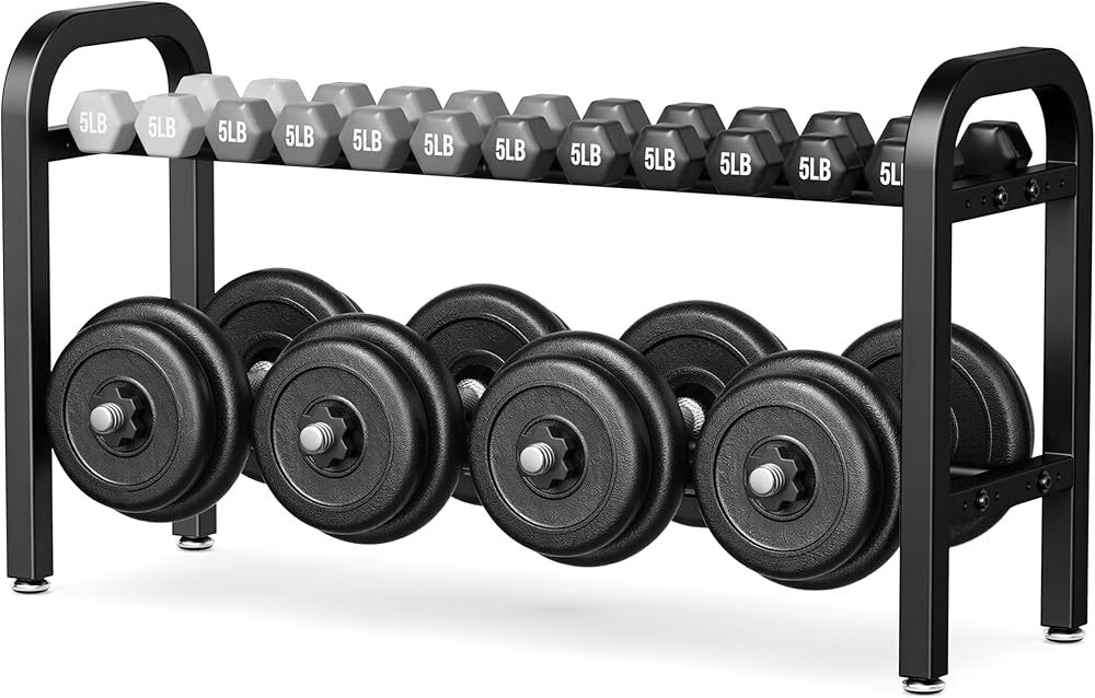 Strong Metal Build: Made from reinforced metal with a scratch-resistant finish. Each shelf holds up to 150 lb, for a total capacity of 300 lb—perfect for daily use in your home gym