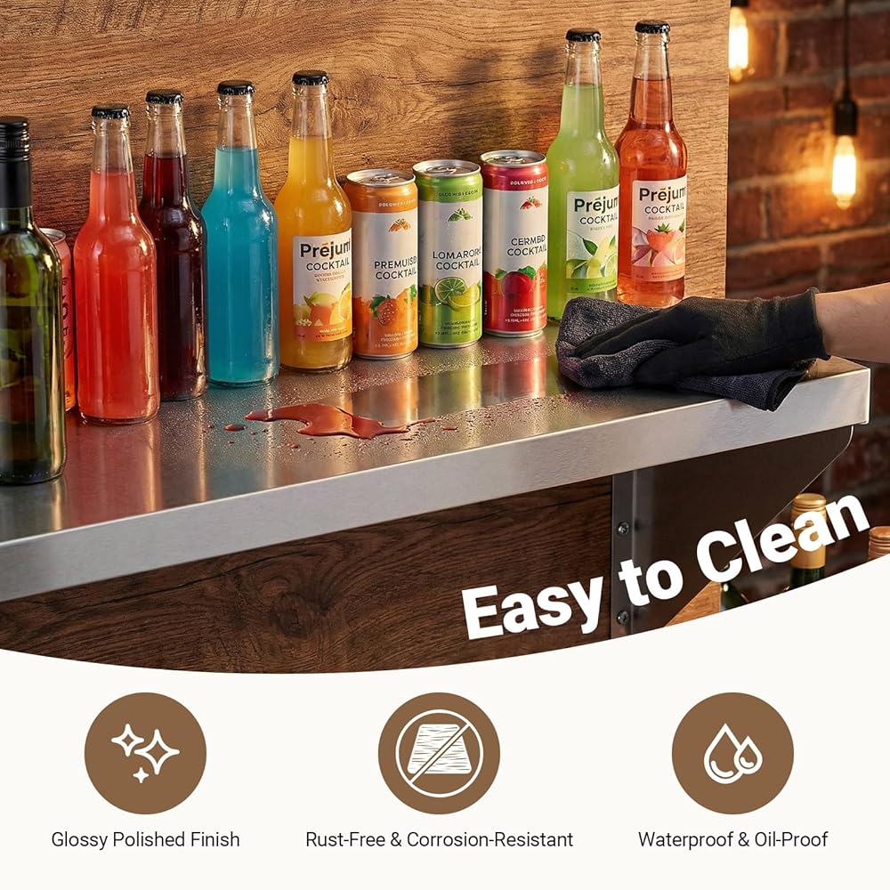 • 【حواف مستديرة سهلة الاستخدام وسهلة التنظيف】السلامة هي أولويتنا لأن كل حافة وركن من رف المطبخ التجاري الخاص بنا تتميز بلمسات نهائية مستديرة ومطوَّقة احترافية، مما يقضي على الأسطح الحادة لمنع الجروح. السطح الفضي المصقول لا تشوبه شائبة وممتع من الناحية الجمالية، في حين أن اللمسة النهائية الناعمة غير المسامية مقاومة للماء والزيوت، ويمكن تنظيفها بسهولة بقطعة قماش مبللة فقط.