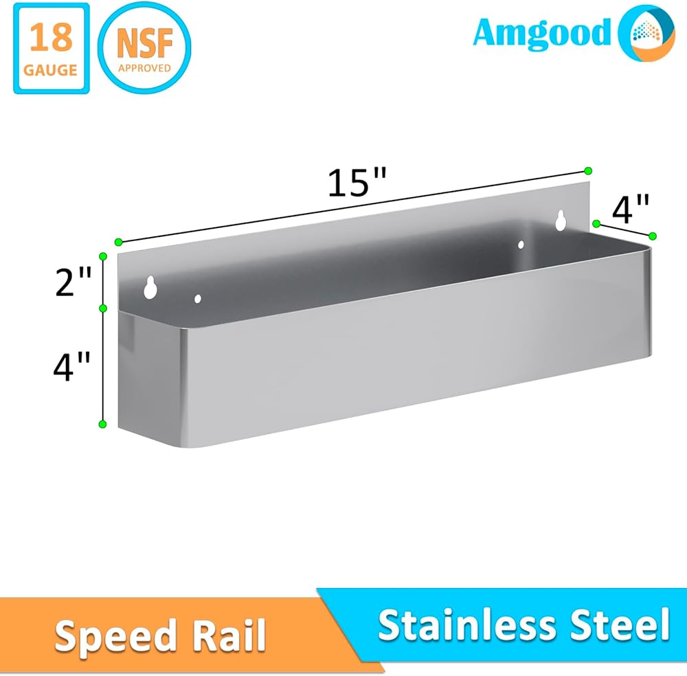 The AmGood 15-inch Stainless Steel Single-Tier Speed Rail is expertly crafted from 18-gauge stainless steel, providing a robust and stylish solution for organizing your bar essentials. This durable speed rail is designed to handle the demands of a busy bar environment while enhancing your overall service efficiency.