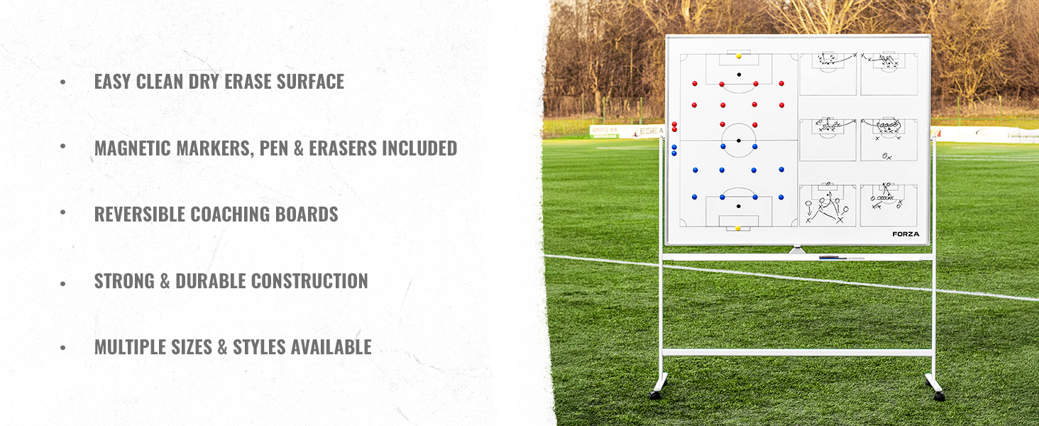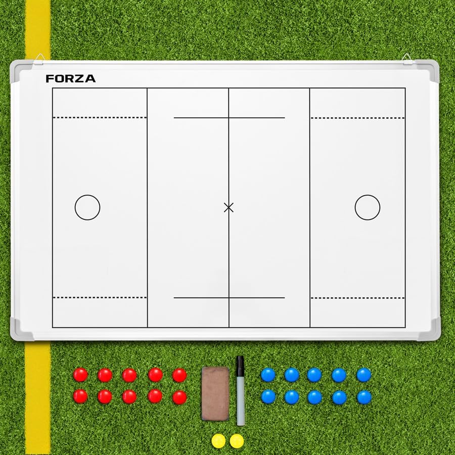 سبورة بيضاء للتدريب الرياضي مزدوجة الجوانب مقاس 35 بوصة × 24 بوصة من فورزا | 13 خيارًا رياضيًا - لوح مسح جاف مزود بعلامات مغناطيسية وقلم وممحاة (كرة القدم، بدون حقيبة حمل) in Kuwait