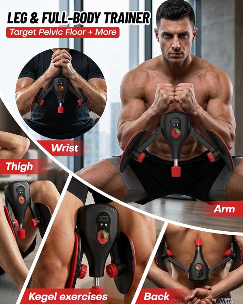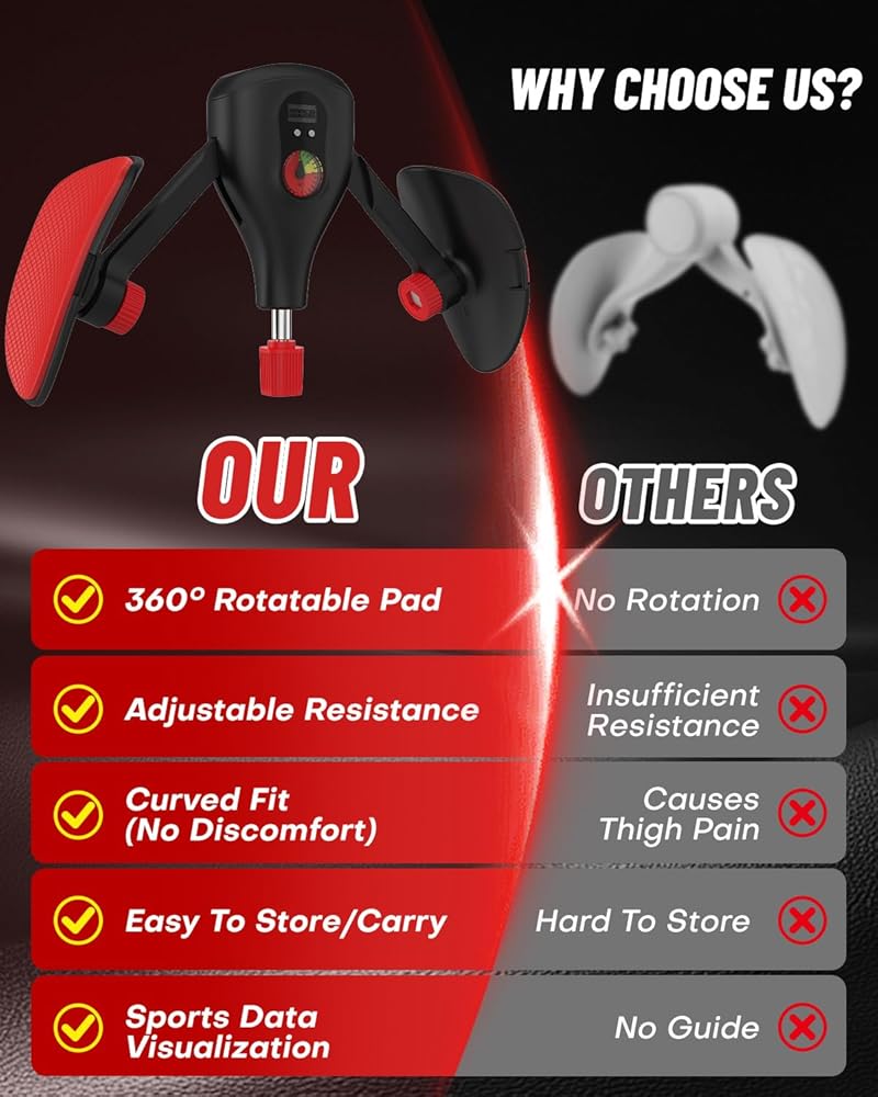 【Upgraded Design with Visual Feedback】This updated inner thigh exerciser includes a visual digital display that shows resistance levels in real time, giving you clear, intuitive feedback on your exercise intensity. This makes it easier to plan, track, and complete your workout routines. Additionally, a securing strap has been added to the supports to keep the device firmly in place during use, preventing slipping and ensuring more effective training sessions.