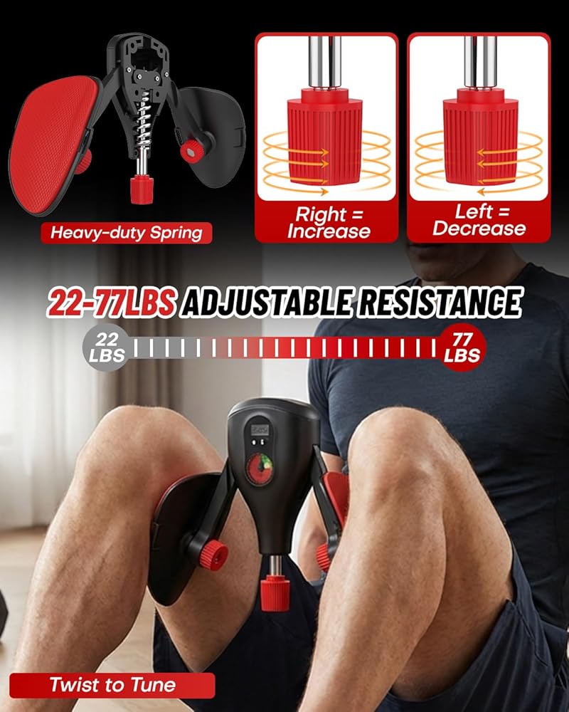 【Adjustable Resistance from 0 to 77 lbs】Equipped with a reinforced steel spring and an easy-turn knob, resistance adjustment is simple and precise. The visual resistance scale helps you quickly identify and set your desired training intensity. With a resistance range of 0–77 pounds, the kegel exerciser, pelvic floor muscle is capable of supporting a wide variety of glute and thigh exercises at any fitness level.