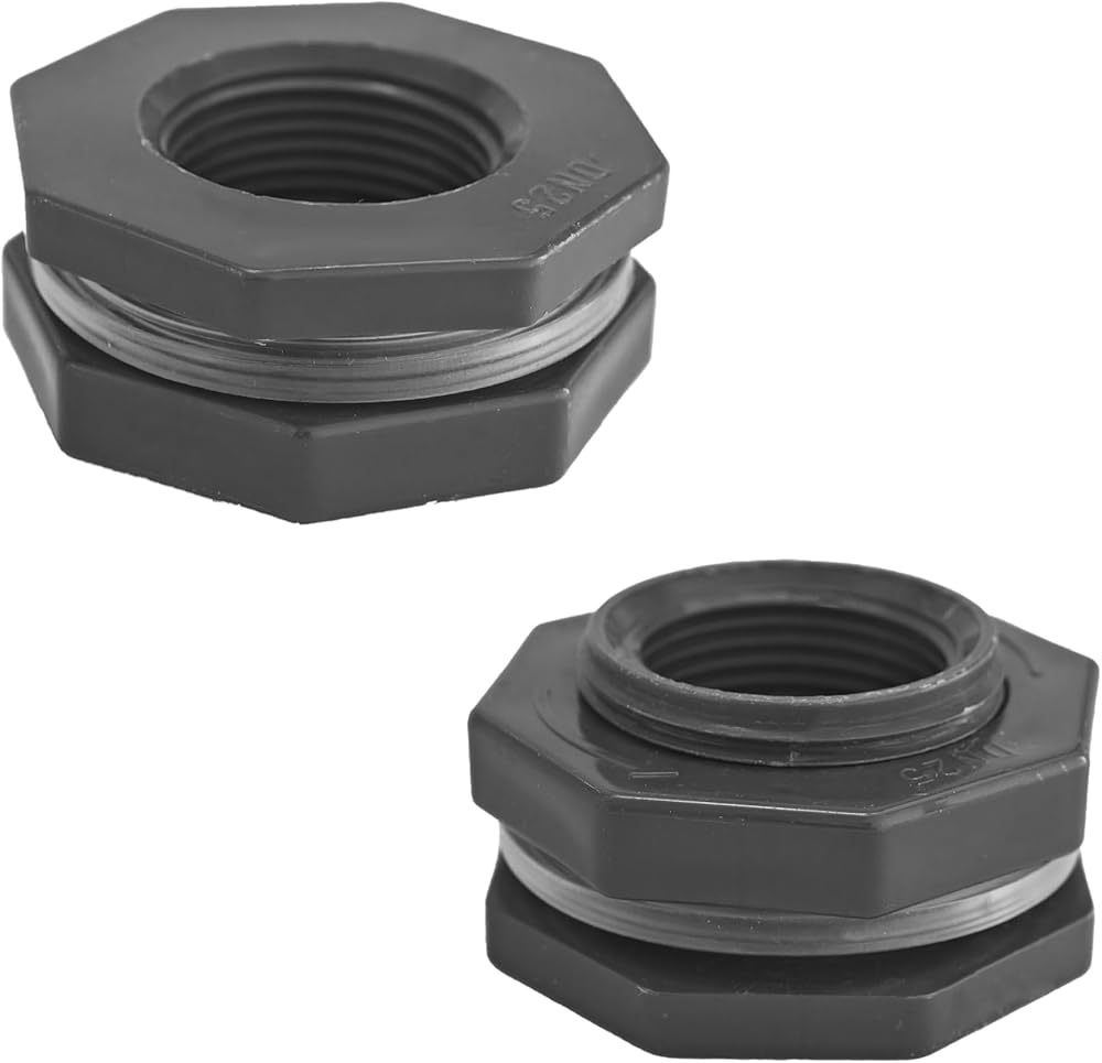 Package contains: 2pcs 1" pvc bulkhead fitting.