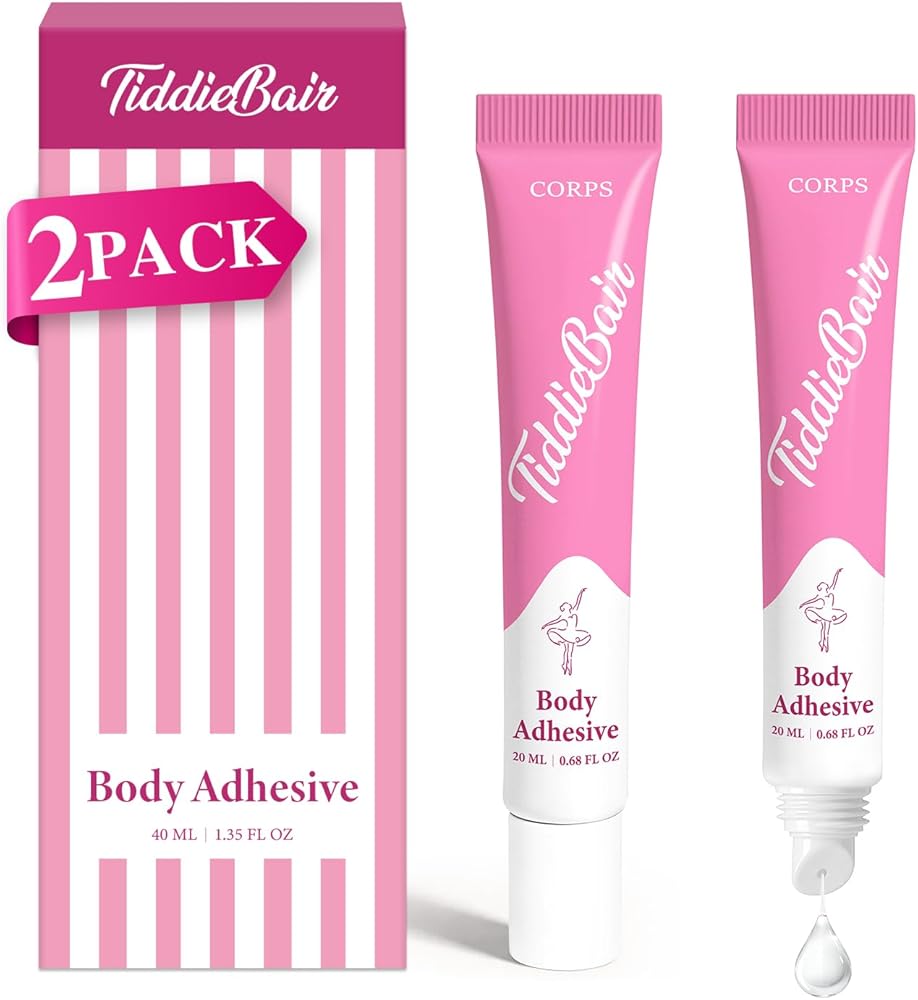 2-Pack 40ml Body Glue for Clothes - Body Adhesive Fashion Glue Alternative for Low-cut Styles, Strapless Dresses and Work Blouses - Sweat and Dance Proof, Fast Drying