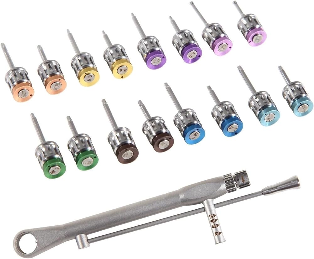 • All-Inclusive Kit: Includes an adjustable torque ratchet (10-70 Ncm), 8 short and 8 long drivers. Color-coded for quick identification, it boosts efficiency. Upgrade for a smoother, professional restoration!