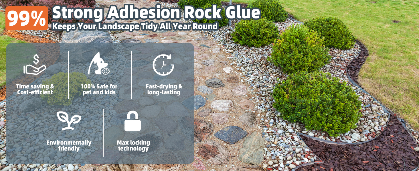 • 【تنوع واسع النطاق وحماية معززة من التآكل】صمغ فاخر مصمم خصيصًا للمناظر الطبيعية للصخور! يعمل رذاذ max Rock Glue الخاص بنا على تثبيت مجموعة متنوعة من عناصر المناظر الطبيعية بشكل آمن، بما في ذلك الصخور ورقائق الخشب والحصى والرمل والأصداف وقش الصنوبر والحصى والأحجار. يمكن للغراء الصخري القوي أن يربط بشكل آمن الحجارة التي يصل حجمها إلى 1.2 بوصة. يمنع بشكل فعال النزوح عن طريق الرياح والأمطار، ويضمن غراء المناظر الطبيعية الخاص بنا بقاء حصى البازلاء في مكانه.
