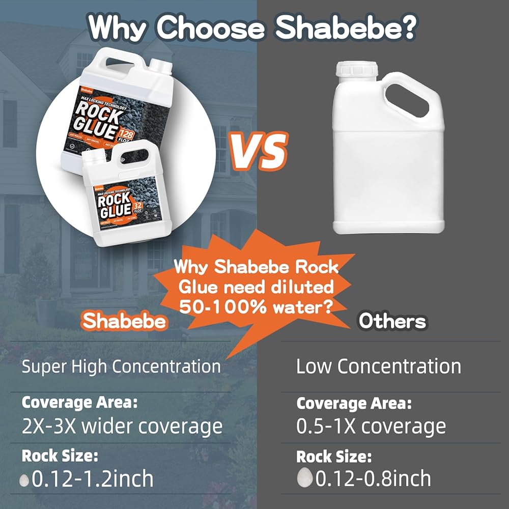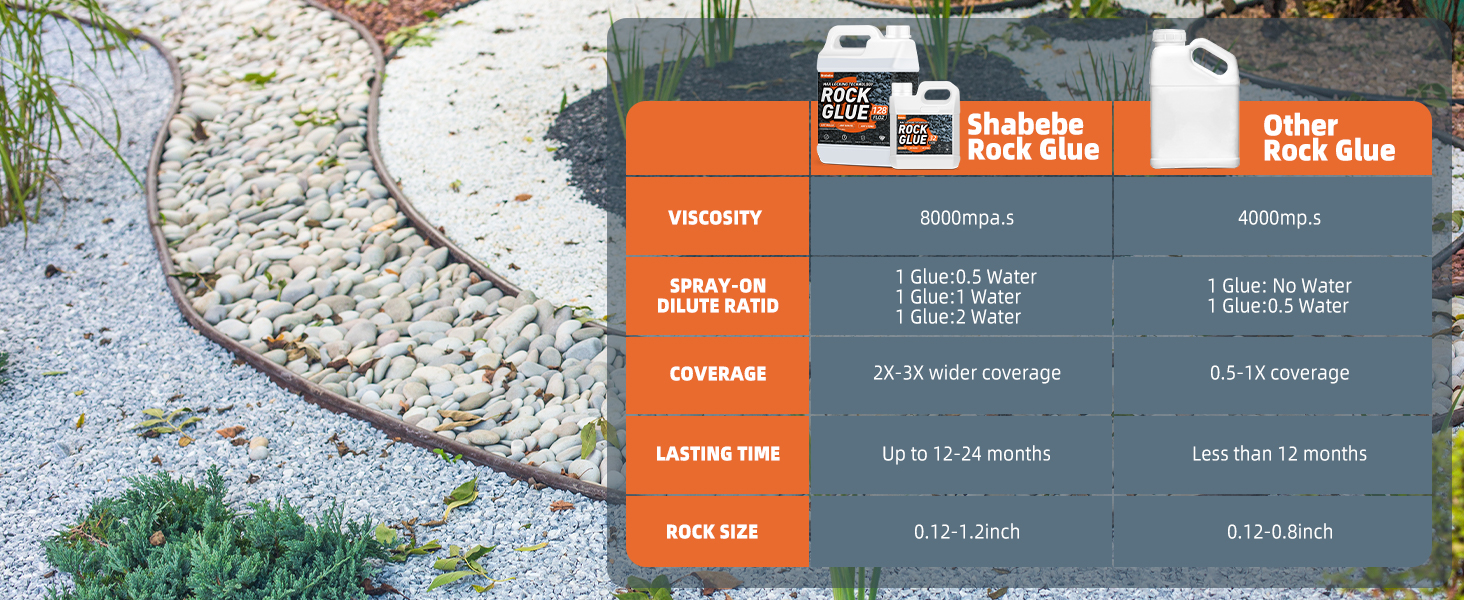 • 【سهولة الاستخدام 】قم بتخفيفه بنسبة 50-100% من الماء على الأقل قبل استخدام البخاخ لمنع الانسداد. بعد التطبيق الأولي، أشعل النار أو اقلب حصى البازلاء. ننصح بوضع 2 - 3 طبقات للحصول على أفضل النتائج، مما يسمح لـ Rock Glue Max بأن يجف بالكامل بين كل طبقة. يتم رش لاصق الغراء الصخري الحصري الخاص بنا باللون الأزرق في ضوء الشمس، مما يجعل من السهل رؤية مكان تطبيقه، ويجف بشكل شفاف.