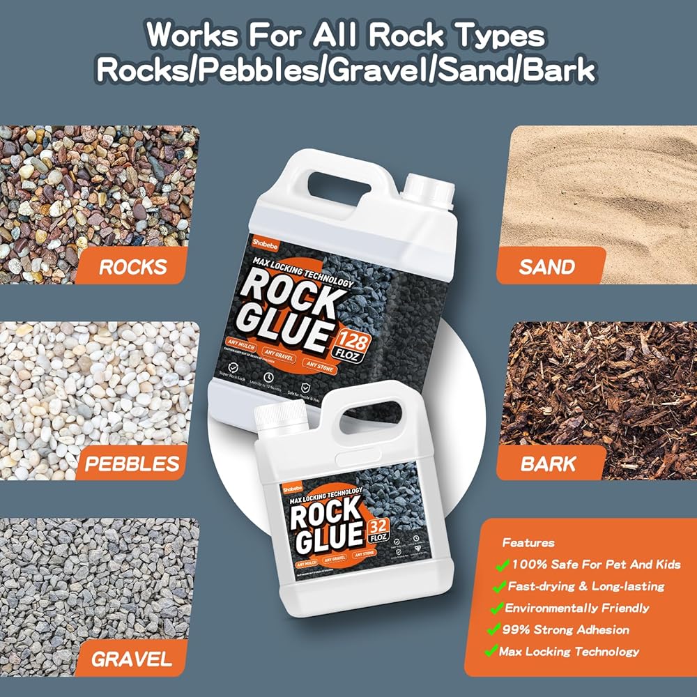 صمغ صخري، 26.59 أونصة، رابط حصى أقوى بنسبة 99% لحصى البازلاء، تحول الحصى والحجر، تقليل الفوضى، ثبات قوي للساحات والباحات وممرات الحديقة، غراء آمن للحيوانات الأليفة للمناظر الطبيعية