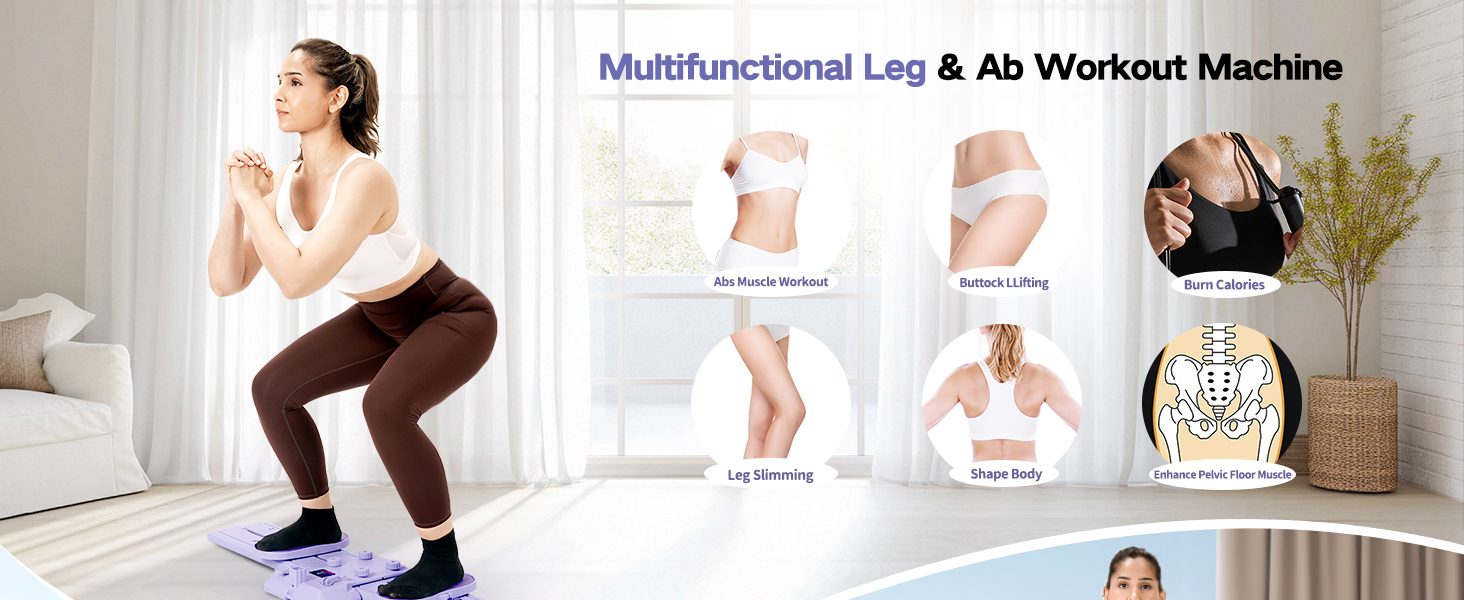 Multifunctional Leg & Ab Machine. This new multiple use exercise equipment is combined leg slimming and ab workout trainer in one machine, targeting on shaping your whole body, slimming your leg and enhancing pelvic floor muscle, improving abs muscle and losing extra weight