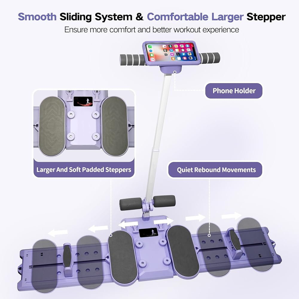 Smooth & Comfortable Sliding .Designed with smooth sliding rebound system to ensure quite operation, you don't need to worry about disturbing others. And whole body exercise machine is built with two larger and soft padded steppers, providing more comfort during workout and better workout experience. The max weight capacity of user is up to 300 lbs.