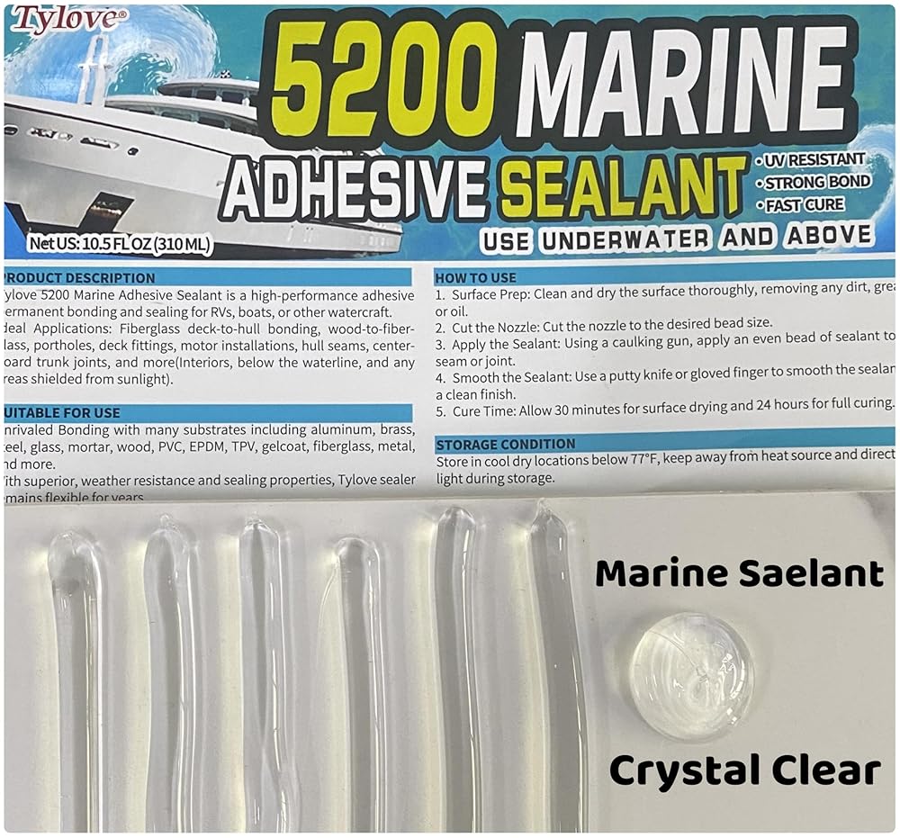 [شفاف كريستالي] 5200 مانع التسرب البحري الشفاف - لاصق مقاوم للماء مقاوم للأشعة فوق البنفسجية للقوارب والنوافذ والزجاج والتطبيقات البحرية صديق للبيئة، رائحة منخفضة (أنبوب 10.5 أونصة)