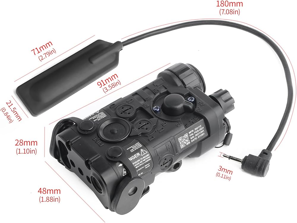 ليزر Airsoft PEQ التكتيكي مع 4 أوضاع، تهدف إلى رؤية ليزر حمراء مع مفتاح ضغط عن بعد بقابس 2.5 مم، رؤية ليزر لصندوق PEQ لـ AEG GBB CQB، مناسب لسكك Picatinny مقاس 20 مم