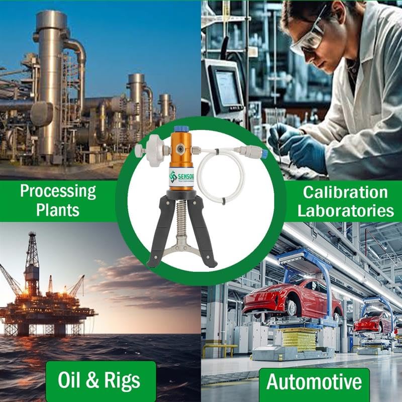 The SK-2200 Hand Pump Vacuum & Pressure Calibrator is a reliable and accurate solution for professionals involved in calibration, instrumentation, and maintenance. Engineered for precision, this hand-operated pump generates controlled pressure and vacuum to test and calibrate pressure gauges, transmitters, sensors, and related industrial instruments. Built with robust aluminium housing and stainless steel connectors, the calibrator offers excellent durability and leak resistance. Its clean, contamination-free design ensures smooth operation when used with properly cleaned inlet and threaded connections, helping maintain accuracy and extending product life. With a pressure capability of up to 30 Bar and vacuum generation down to -0.9 kg/cm², the SK-2200 meets the requirements of both laboratory and field calibration tasks. The portable design allows technicians to perform calibration anywhere without dependence on electrical or pneumatic power sources. For long-term performance, it is recommended to store the pump in an airtight container when not in use, protecting internal seals and O-rings. Whether used in calibration labs, process industries, or maintenance operations, this hand pump delivers dependable performance and precise control every time.
