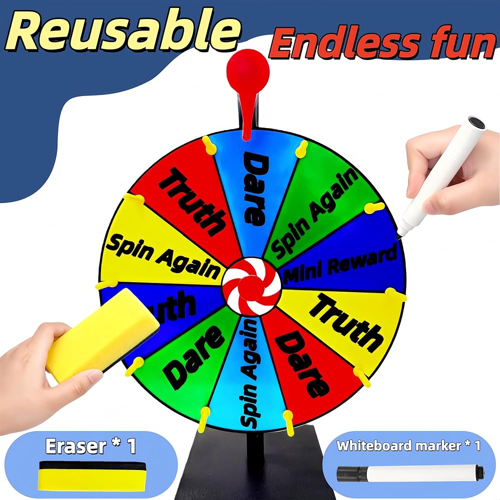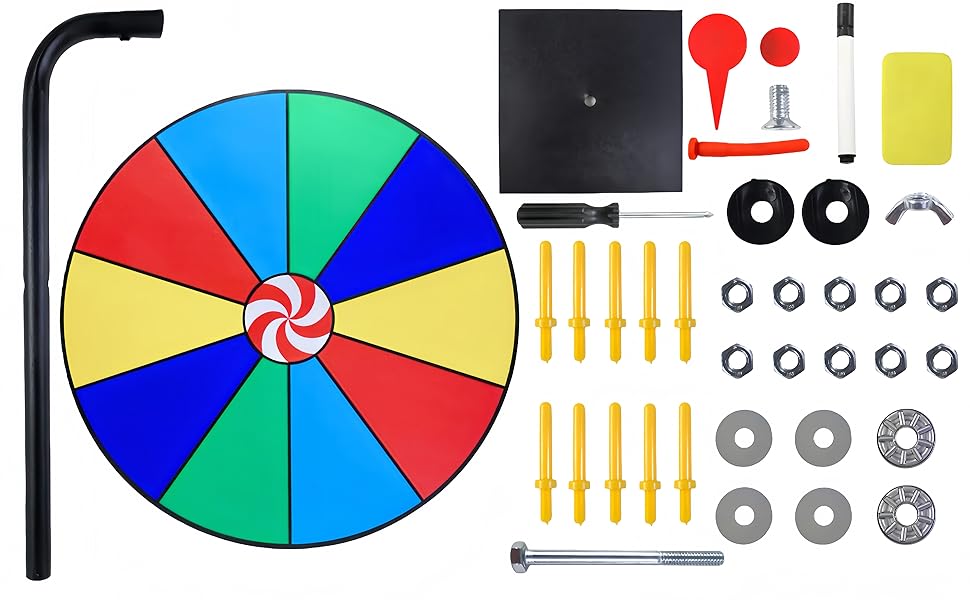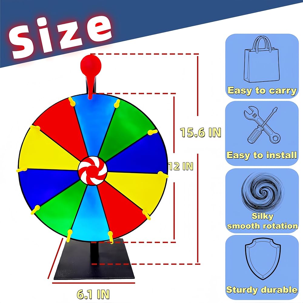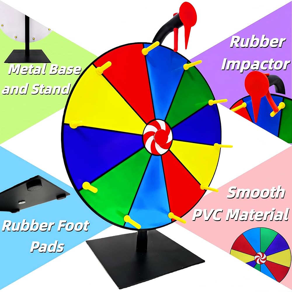 • دوران سلس ونقرة مُرضية: استمتع بتجربة إثارة كل دورة! بفضل آلية التحمل عالية الجودة، فإن عجلة الدوران الخاصة بنا للحصول على الجوائز تدور بسلاسة وموثوقية. يصاحب كل دورة صوت نقر واضح ومرضي يبني الترقب، مما يجعل دوران العجلة مع الحامل أكثر جاذبية وعادلة لجميع المشاركين.