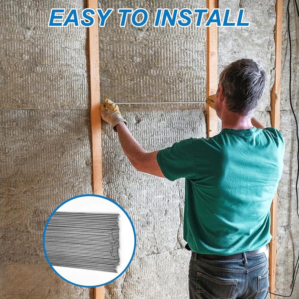 • Durable & Robust Build: These metal insulation rods are made from 1095 high carbon steel wire, offering excellent tensile strength and flexibility to securely support insulation materials, preventing sagging or slipping. The metal wires have a smooth surface that resists rust, making them ideal for long-term installation applications