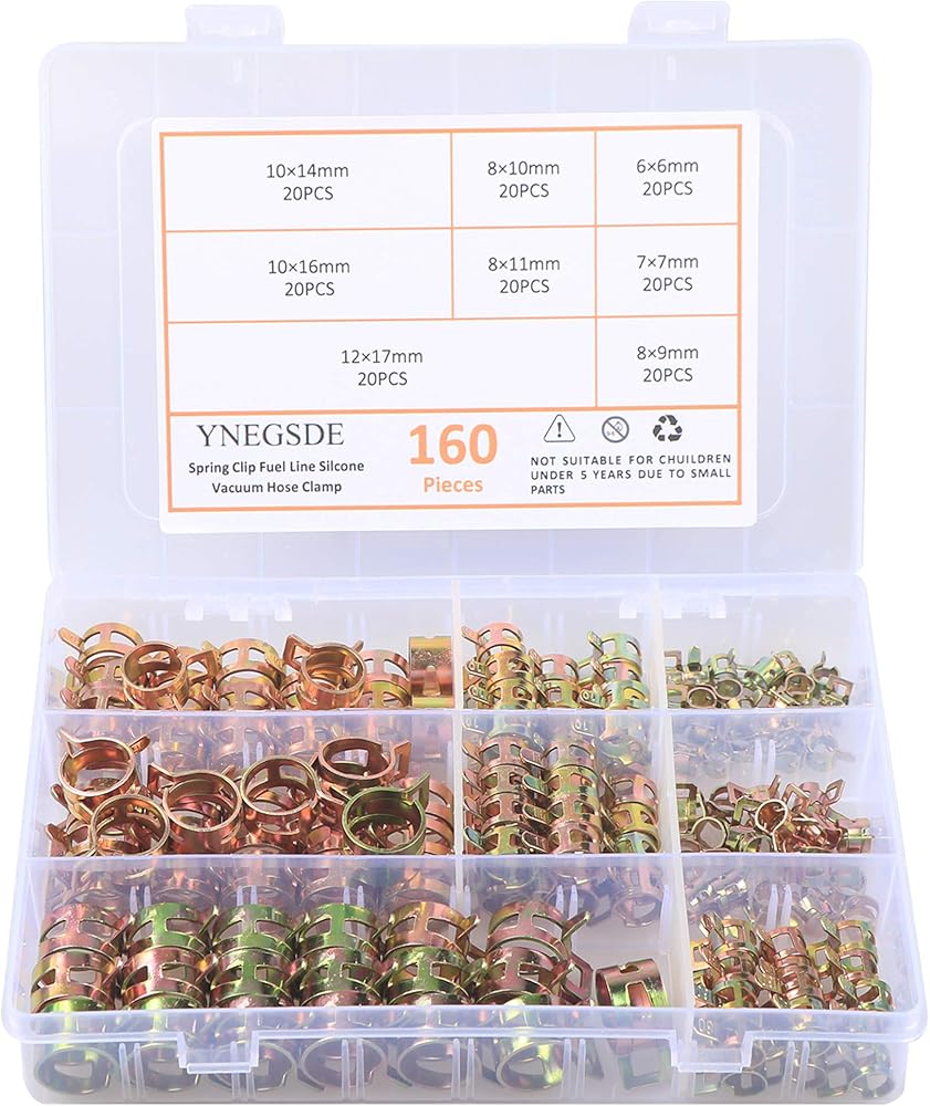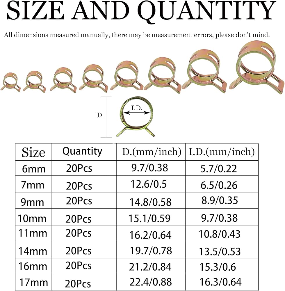 -- We prepared 8 different sizes hose clamps for you, hose diameters includes: 6mm 7mm 9mm 10mm 11mm 14mm 16mm 17mm