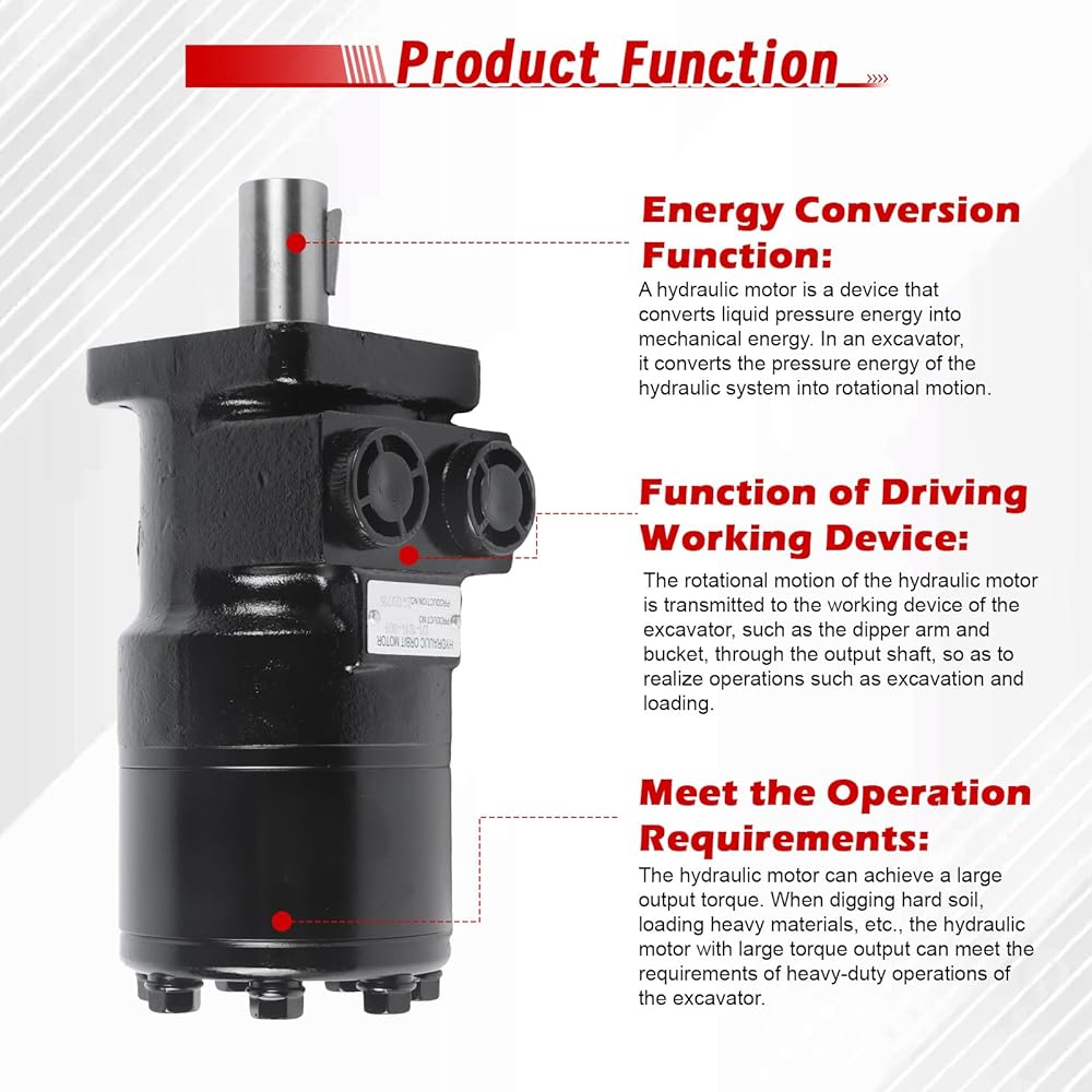 وظيفة المنتج: تم تصميم وإنتاج المحرك الهيدروليكي للجزء الثابت من قبل مصنع محترف بأداء ممتاز. يستطيع المحرك الهيدروليكي تحويل الطاقة الهيدروليكية من الزيت أو أي سائل هيدروليكي إلى طاقة ميكانيكية، مما يوفر الطاقة الكافية للنظام الهيدروليكي.