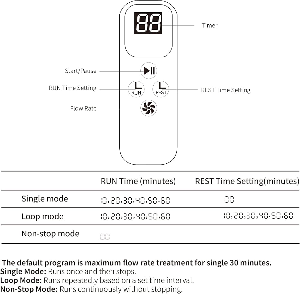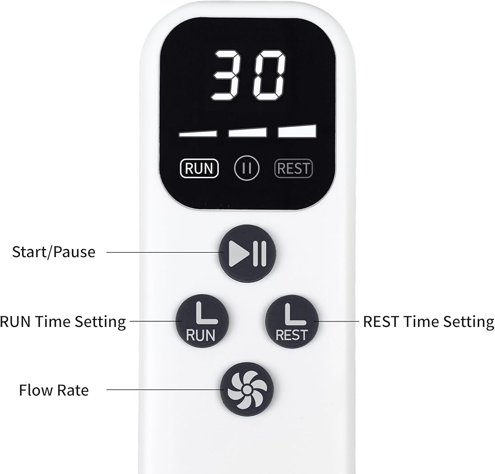 Tailor your cold therapy to your comfort level with a fully programmable timer. Set your desired run and pause intervals, and choose from three adjustable flow speeds to control the intensity of cooling. The simple 4-button remote makes operation effortless and intuitive.