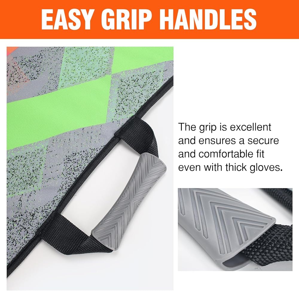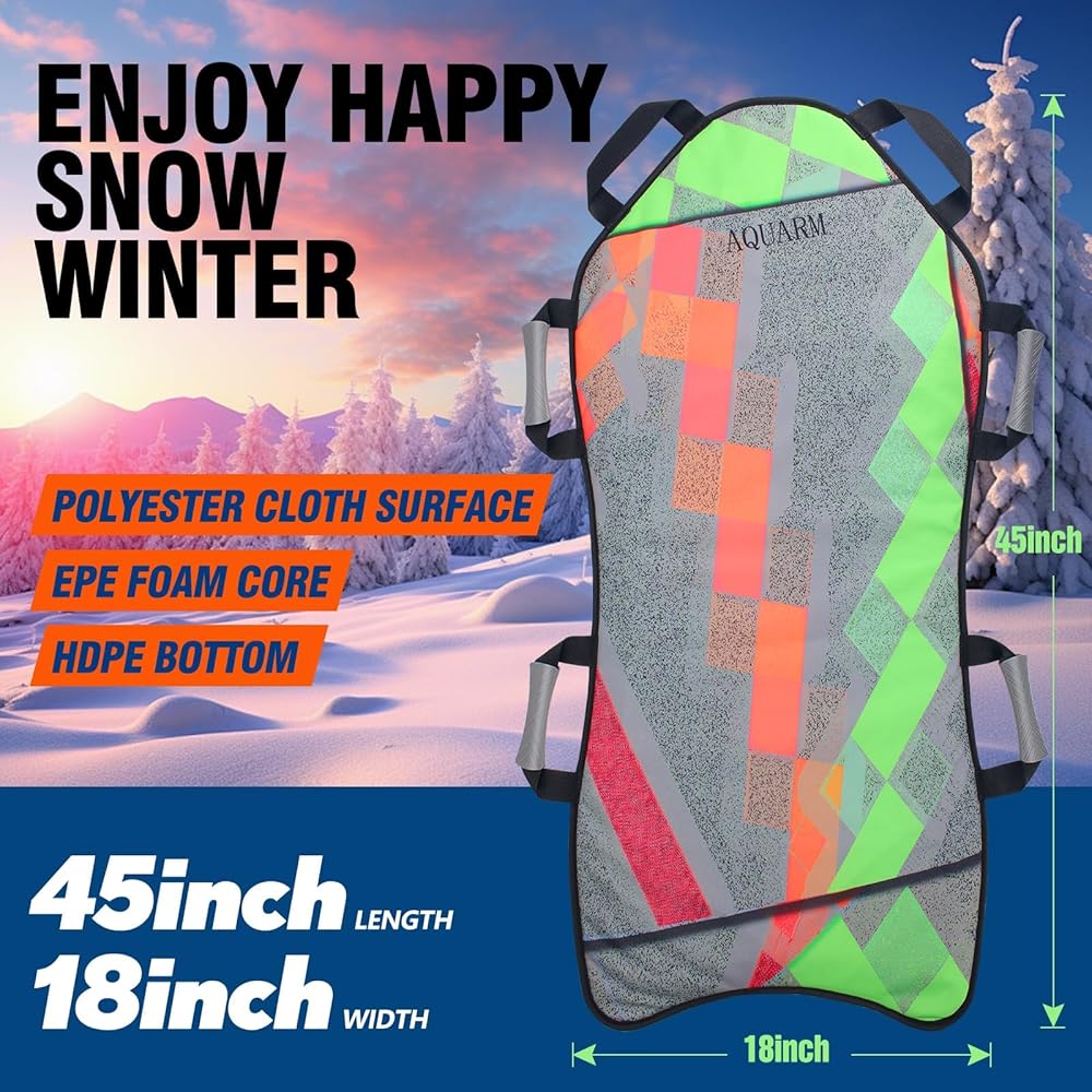 𝗣𝗥𝗘𝗖𝗜𝗦𝗜𝗢𝗡 𝗦𝗧𝗘𝗘𝗥𝗜𝗡𝗚 & 𝗦𝗘𝗖𝗨𝗥𝗘 𝗚𝗥𝗜𝗣: مصمم خصيصًا التميز، تتميز زلاجة الثلج القابلة للطي لدينا بسطح مجوف لتوجيه دقيق وقضبان مرتفعة قليلاً تبقيك آمنًا على الثلج الناعم المسحوق. سواء كنت جالسًا أو مستلقيًا، فهو يتكيف مع ذوقك، وهو مثالي لشخص بالغ أو شاب، أو حتى لشابين أصغر حجمًا بفضل عرضه الكبير وتصميمه المزدوج المقبض.