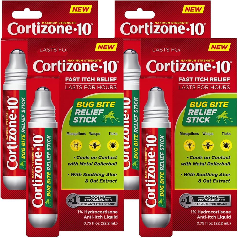 INCLUDES: Four (4) 0.75 oz. liquid roll-on sticks of Cortizone 10 Maximum Strength* Fast Acting Itch Relief (*Among topical anti-itch OTCs)