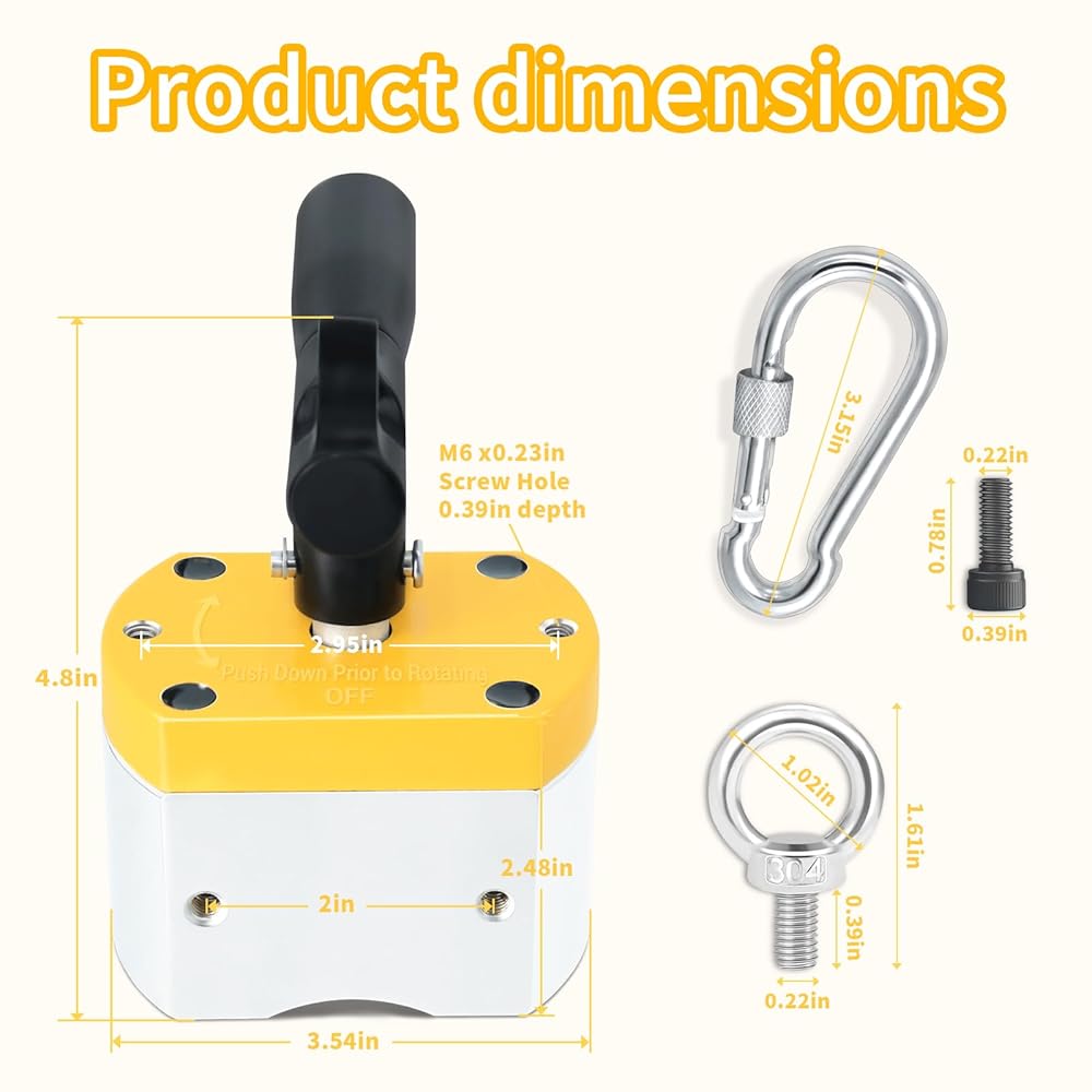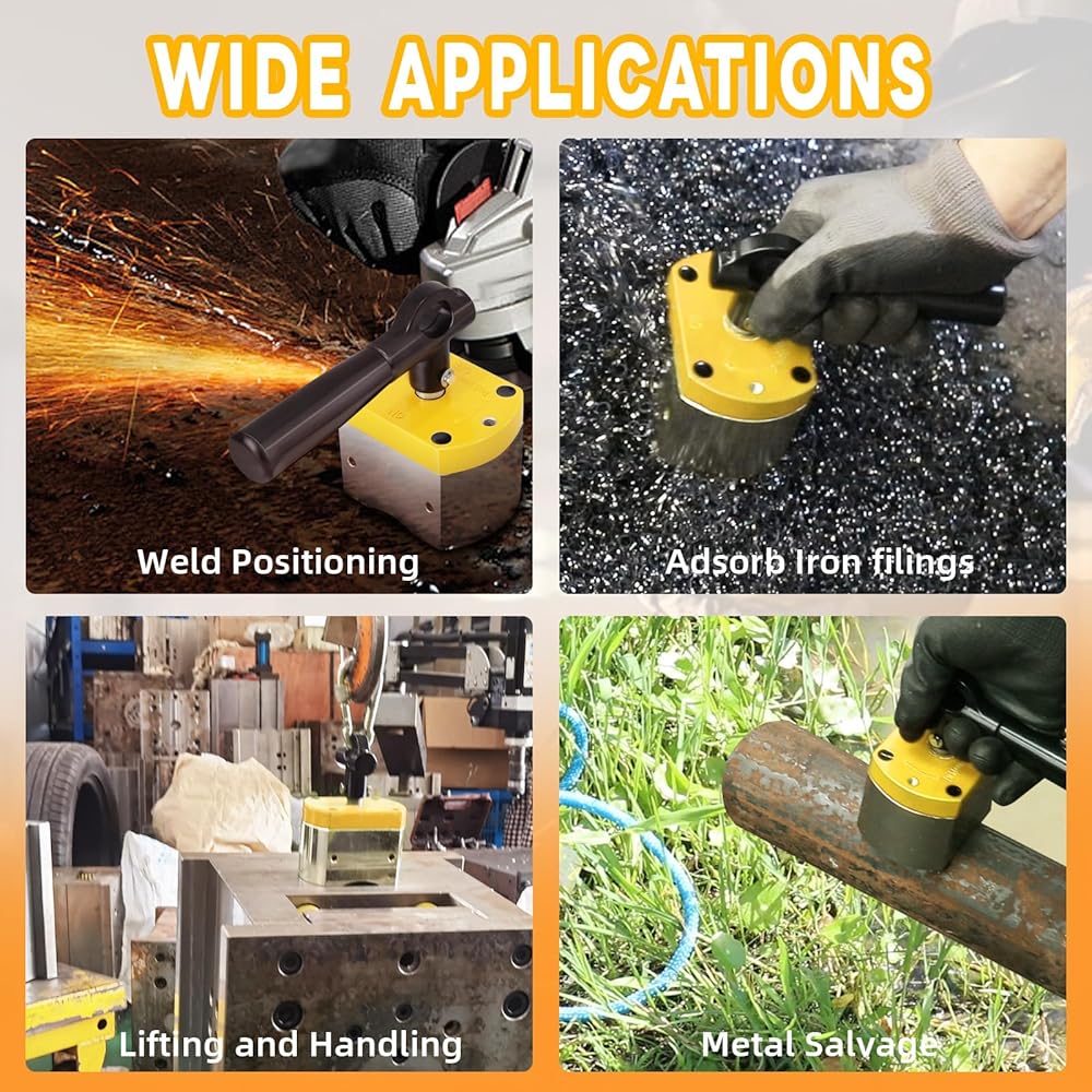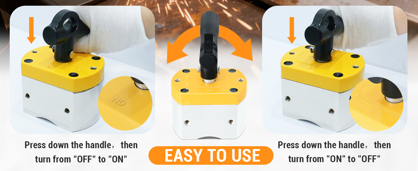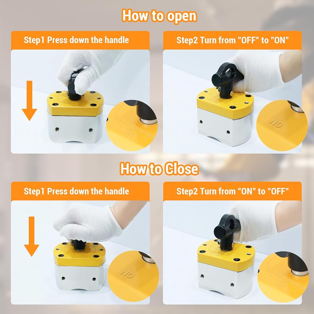 سهولة التشغيل/الإيقاف باستخدام المقبض: يتيح لك المقبض المدمج تشغيل القوة المغناطيسية أو إيقاف تشغيلها بسهولة، مما يجعل من السهل وضع الأجزاء المعدنية بسرعة وأمان - مما يوفر لك الوقت والجهد أثناء الإعداد أو التعديلات