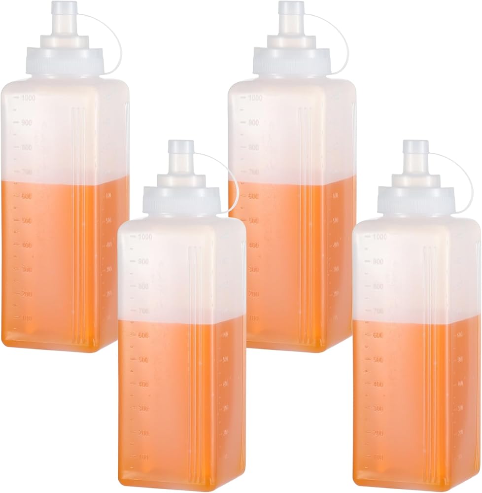 • Wide-Mouth Squeeze Bottles: This set includes 4 large squeeze bottles designed with wide openings for easy filling, dispensing, and cleaning. The wide mouth squeeze bottles allow for effortless squeezing, and the nozzle offers good flow control for sauces like ketchup, duck sauce, sour cream, ranch, and honey. These bottles help prevent clogs, reduce mess, and work well in kitchens, BBQs, restaurants, and food stalls.