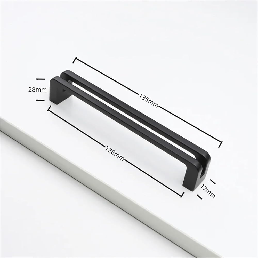 Cabinet Door Handles Zinc Alloy Solid Wardrobe Drawer Pulls Furniture Handle Hardware 1Pcs(Black-C128mm)